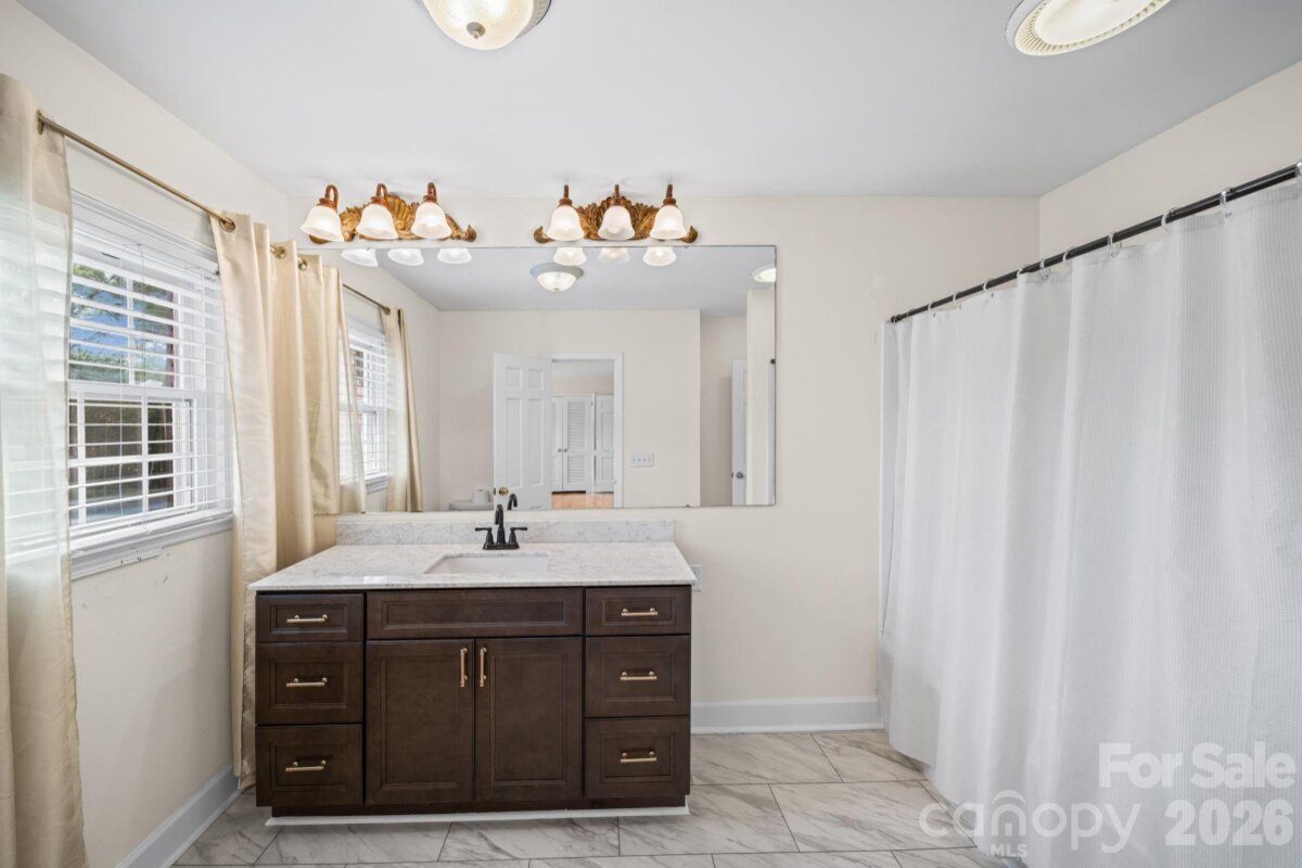 Experience the enduring elegance of this exceptional brick ranch, perfectly situated in one of Gastonia’s most coveted and picturesque neighborhoods. Nestled on a sprawling corner lot just a stone’s throw from the Historic District, this home is a testament to superior craftsmanship and "move-in ready" perfection. Gleaming hardwoods flow throughout a floor plan designed for both comfort and sophistication, while custom blinds frame views of the lush surroundings. The heart of the home is a magnificent, cozy den anchored by a stately fireplace the ideal sanctuary for crisp evenings. The primary suite offers a spa-like retreat with a garden tub and separate shower, while the additional spacious bedrooms are joined by a thoughtful Jack-and-Jill bath featuring classic ceramic tile. Practical luxury abounds, from the cedar-lined attic closets to the functional laundry room with a dedicated sink and guest half-bath. Outside, the private backyard is a horticultural dream, featuring professionally terraced perennial gardens. With LeafFilter gutters and a versatile walkout cellar with an integrated mower workshop, this home offers total peace of mind in an unbeatable location.