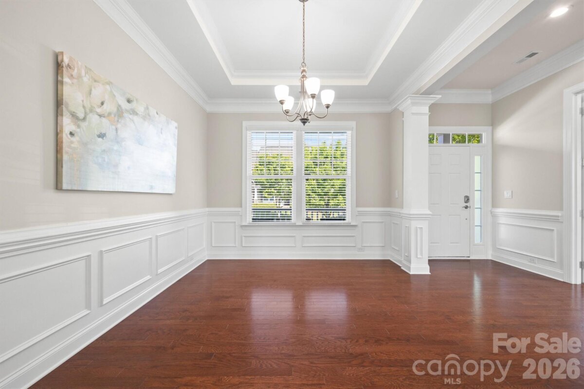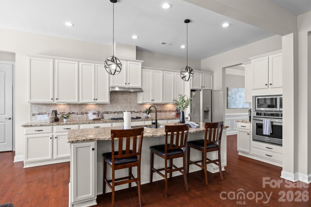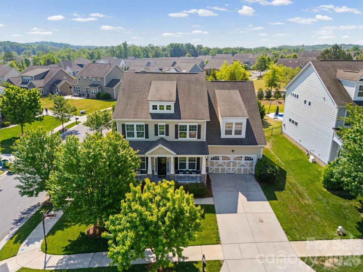 LOCATION LOCATION!!! This Quality BONTERRA HOME sits on a Corner Lot with Treed and Fenced Back Yard! Highly Desired "Cuthbertson" schools! You will LOVE sitting on the Front Porch or Relaxing on the Paver Patio with Firepit in the PRIVATE Backyard! Interior Boasts of 10 Foot Ceilings, Moldings and Wood Flooring! Private OFFICE with French Doors, Dining Room/Flex Room, Wonderful Kitchen w/White Cabinets that features: HUGE Center Island, Granite Counters, Tiled Backsplash, and Wall Oven/Microwave, The Family Room Boasts of COFFEREED CEILING flanked by TWO BUILT-IN BOOKCASES/SHELVING CABINETS. Separate Laundry Room and Rear Hall Drop Zone leads to the 3 Car garage area consisting of a bay for 2 Cars side by side and a third bar area to TANDEM a third Car- Ideal for hobbies, golf cart, or simply for STORAGE! Upper-Level HUGE Primary Bedroom. Primary Bath with Large Walk in Closet, Separate Shower and Garden Tub and TWO SEPARATED VANITIES. Bedrooms #2 & Bedroom #3 plus the #4 Bedroom/Bonus connect to baths. Bedroom #5 has access to Hall Bath. Very active community with Amazing Clubhouse and Pool, Walking Trails and convenient to Waxhaw Services.
