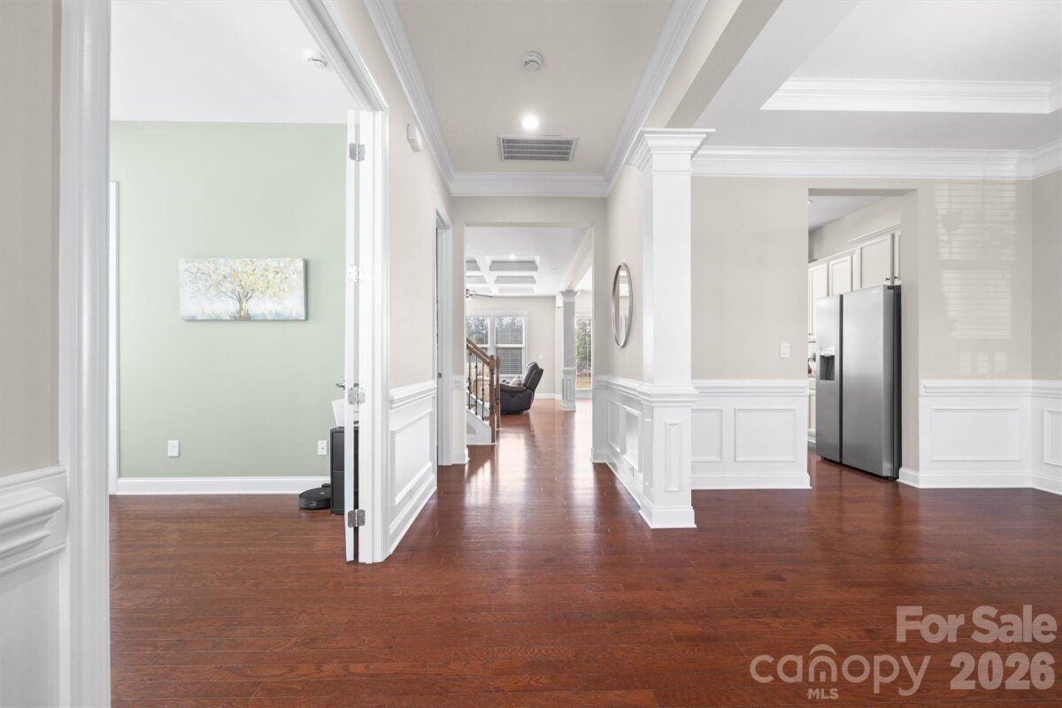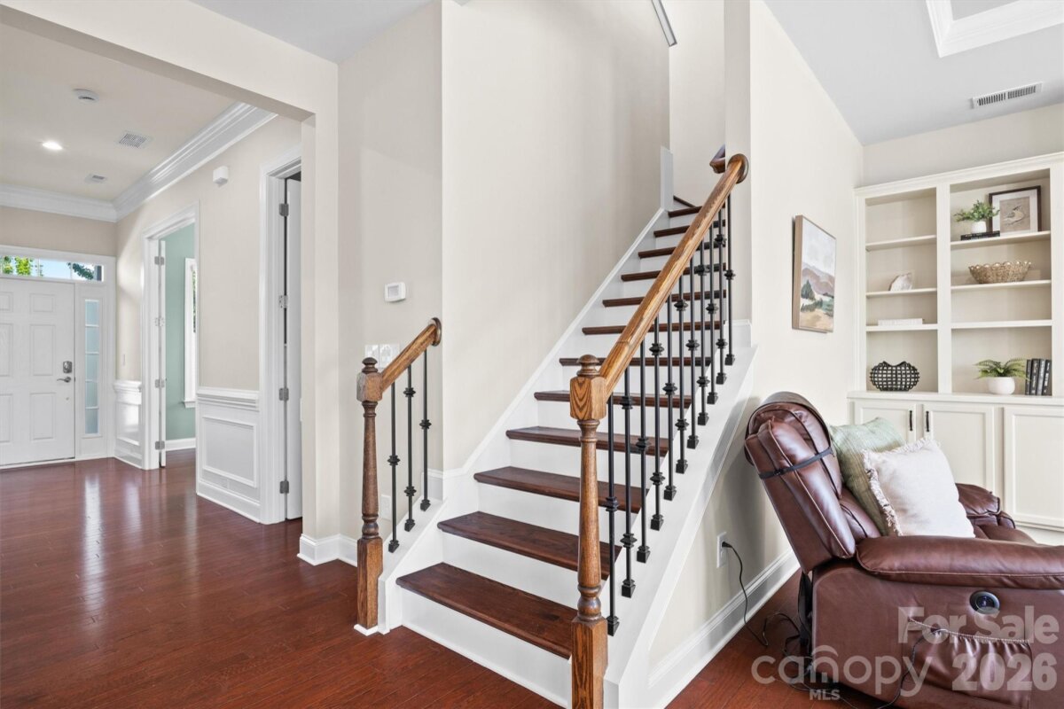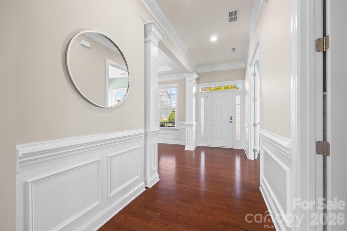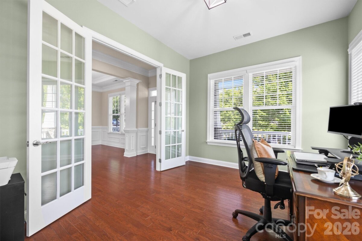 LOCATION LOCATION!!! This Quality BONTERRA HOME sits on a Corner Lot with Treed and Fenced Back Yard! Highly Desired "Cuthbertson" schools! You will LOVE sitting on the Front Porch or Relaxing on the Paver Patio with Firepit in the PRIVATE Backyard! Interior Boasts of 10 Foot Ceilings, Moldings and Wood Flooring! Private OFFICE with French Doors, Dining Room/Flex Room, Wonderful Kitchen w/White Cabinets that features: HUGE Center Island, Granite Counters, Tiled Backsplash, and Wall Oven/Microwave, The Family Room Boasts of COFFEREED CEILING flanked by TWO BUILT-IN BOOKCASES/SHELVING CABINETS. Separate Laundry Room and Rear Hall Drop Zone leads to the 3 Car garage area consisting of a bay for 2 Cars side by side and a third bar area to TANDEM a third Car- Ideal for hobbies, golf cart, or simply for STORAGE! Upper-Level HUGE Primary Bedroom. Primary Bath with Large Walk in Closet, Separate Shower and Garden Tub and TWO SEPARATED VANITIES. Bedrooms #2 & Bedroom #3 plus the #4 Bedroom/Bonus connect to baths. Bedroom #5 has access to Hall Bath. Very active community with Amazing Clubhouse and Pool, Walking Trails and convenient to Waxhaw Services.