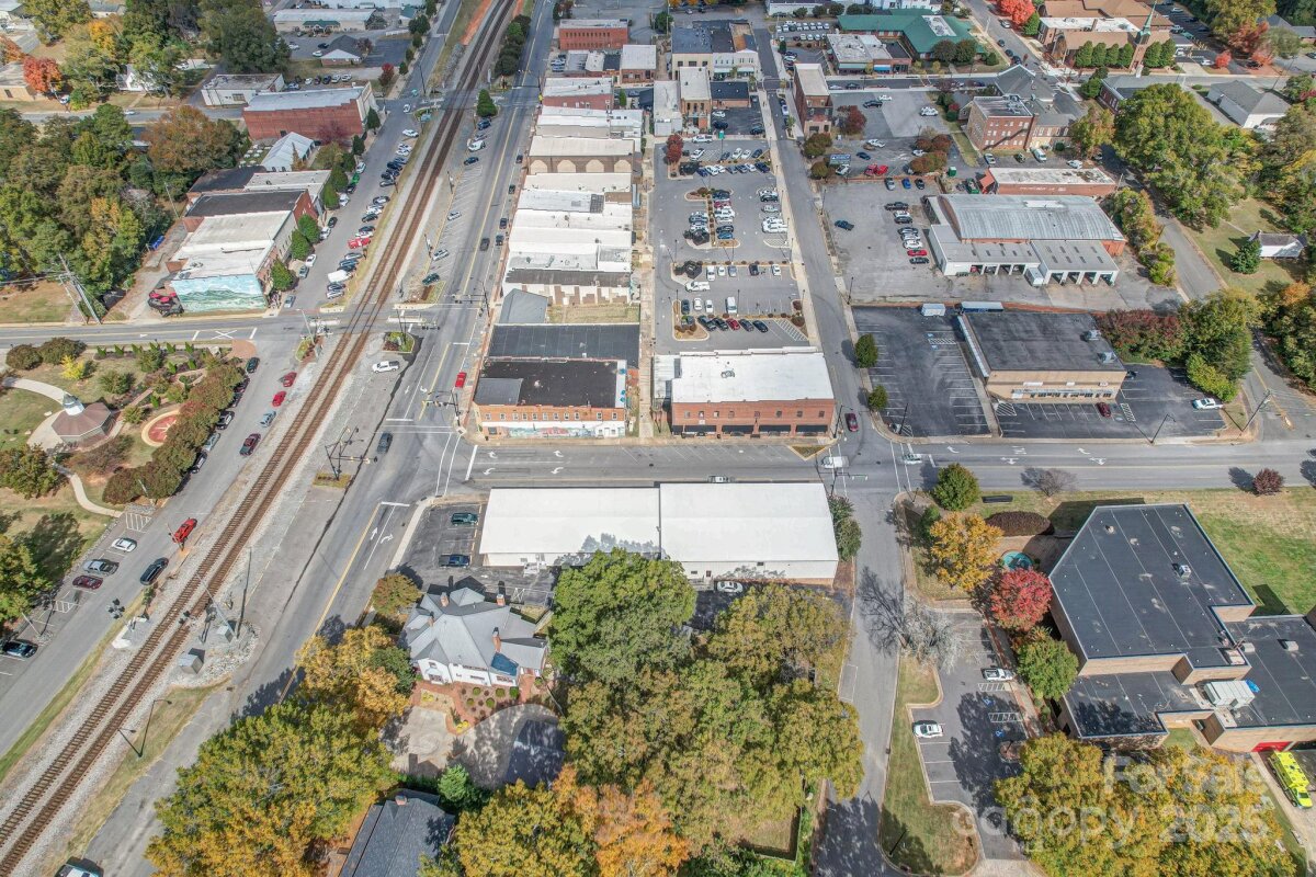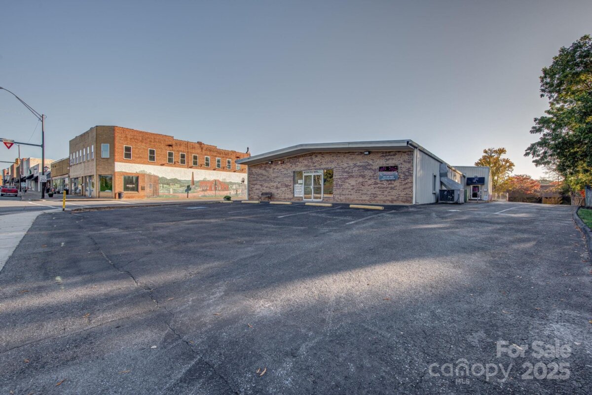 This versatile commercial building is located in the heart of downtown Kings Mountain on a prominent corner lot with strong visibility and access. The property is located within a designated Opportunity Zone, offering potential long-term tax advantages for qualified buyers. Currently operating as a successful dance and gymnastics studio, the property offers flexibility well beyond its current use. Positioned at two signalized intersections, the site benefits from consistent vehicle and pedestrian traffic within a well-established downtown environment. The property is conveniently located just minutes from Two Kings Casino and provides easy access to Interstate 85 and U.S. Highway 74, supporting strong regional connectivity. This location is well-suited for a wide range of commercial, professional, and service-oriented uses. The building contains approximately 10,977 square feet, with roughly 5,500 square feet dedicated to open studio space featuring high ceilings suitable for a variety of uses. Additional areas include a small church space, office areas, and storage. The property is equipped with three bathrooms and a kitchen, providing functional infrastructure for continued commercial use or future repositioning. The layout, location, and zoning make this property well-suited for owner-users, investors, or redevelopment opportunities.