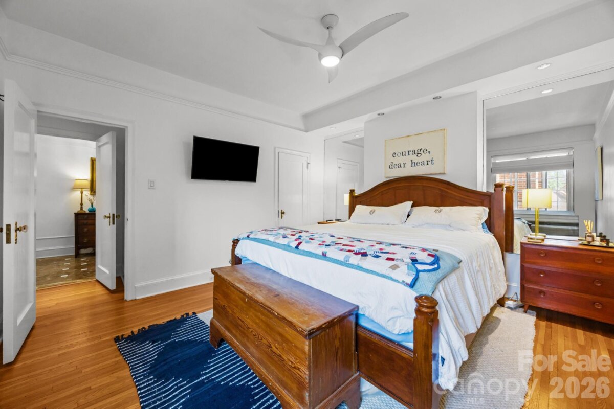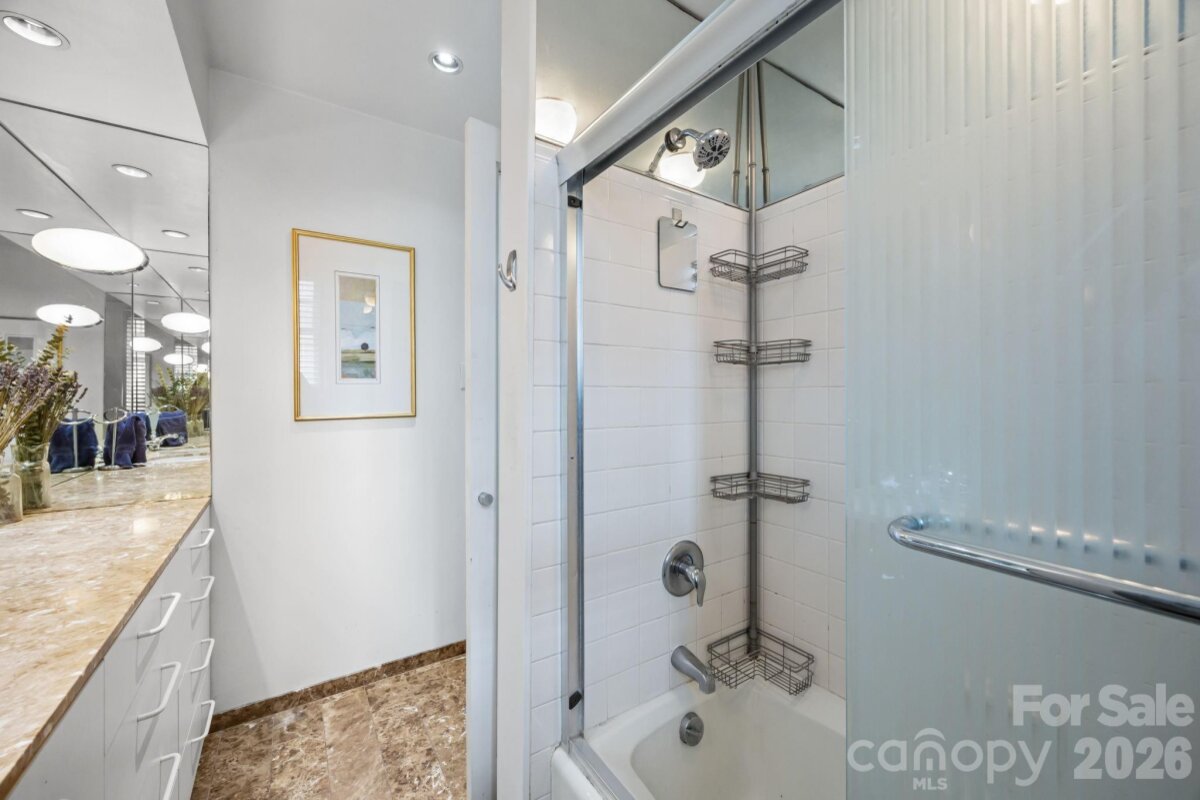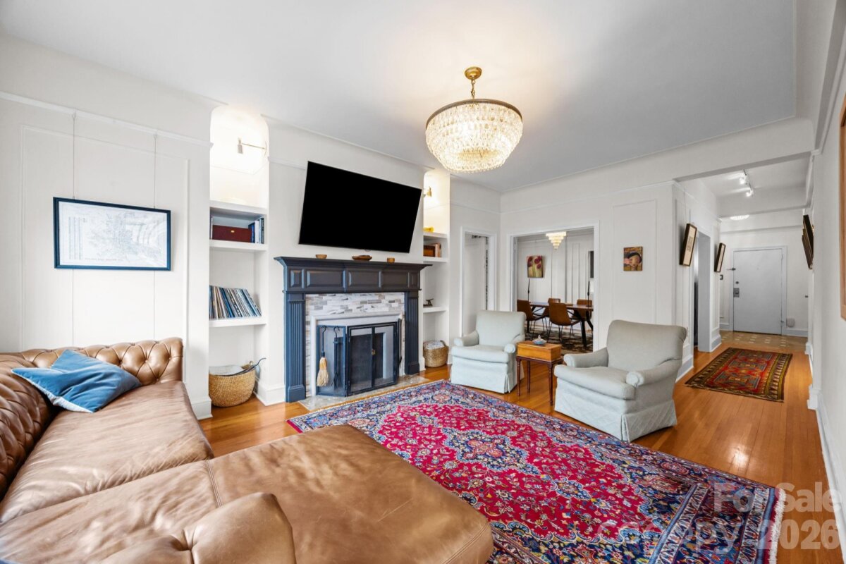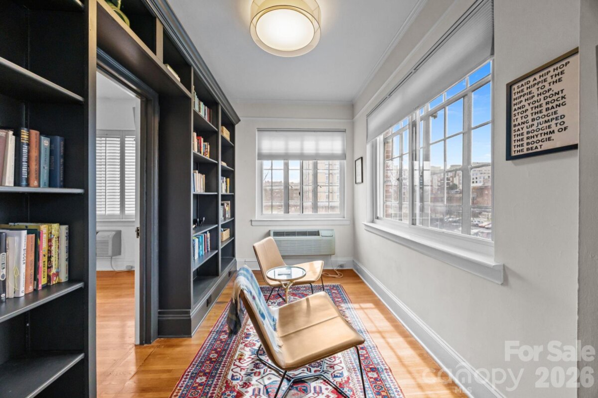 Nestled in the heart of Charlotte’s charming Fourth Ward, this beautifully appointed three-bedroom, two-bath condominium at The Poplar offers the perfect blend of historic character and modern convenience. Rare opportunity for a 3 bedroom condo. Located in one of the City’s most treasured historic buildings, this residence combines timeless architecture and urban living. Every room provides unique views of the City skyline and streets of the Fourth Ward. The floor plan features high ceilings and spacious living areas filled with natural light. The living room includes a fireplace flanked with bookcases and opens to the dining room and sunroom. The updated kitchen has ss appliances, ample cabinet storage along with an extra beverage fridge and bar area. The primary bedroom is privately located away from the other secondary bedrooms. Primary bathroom includes heated floors. Two secondary bedrooms plus an office / sunroom. Incredible proximity to neighborhood restaurants, cultural venues and sporting events. With its prime location, classic architecture, and comfortable living spaces, this exceptional condo offers a rare opportunity to own a piece of Charlotte history while enjoying the convenience of City living. The rooftop common area is being redone as part of a new roof installation and is currently not accessible - once completed it will have spectacular City views for amazing outside living. The common laundry room is located in the basement and includes numerous washers and dryer for easy access. Each unit is allocated a storage area in the basement as well. Don't miss this special condo.