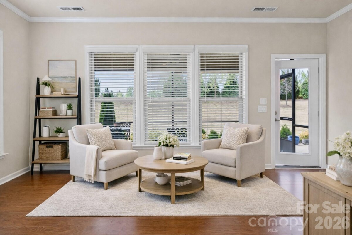 Welcome home . . . Martin Ray model is the favorite of the Expedition Series. Open concept living, great for indoor/outdoor entertaining. Front Office with glass doors is ideal for work or quiet reading. Upgraded Kitchen, staggered white cabinets, quartz countertops, KitchenAid ss appliances, gas cooktop, refrigerator inc, large island w/seating, pendant lights. Butler's Pantry with cabinets and a large walk-in pantry are between the Office and Kitchen. Great Rm with corner fireplace and Dining area offer room for family and friends to gather. A primary Bedroom w/tray ceiling and walk-in closet looks out onto your private back yard. Feel like you are at the spa with the zero-entry walk-in shower in the primary Bath. There are two additional Bedroom, another full Bath, and a Laundry Room with cabinets - washer/dryer included. A Sunroom with glass doors leads to your screened porch, patio and back yard with beautiful landscape, hardscape, lawn maintenance and in-ground irrigation. Tons of amenities--indoor/outdoor pools & hot tubs, 8 lit pickleball courts, 4 lit tennis courts, 2 bocce courts, dog park, playground, fitness center, full time activities director. Come join us in theOrchards. It' a great place to call home.