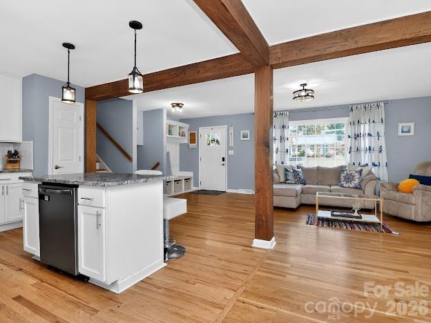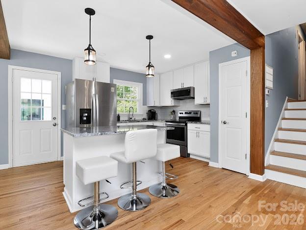 This charming 4 bedroom, 3 full bath is nestled in the Windsor Park community, just minutes from Plaza, Noda, and Uptown Charlotte. With an updated kitchen and bathrooms, it is move in ready and perfect for a homeowner or investor. The kitchen features white cabinets, stainless steel appliances, tile backsplash, and granite countertops. The upper level consists of 3 bedrooms and two full baths. On the lower level, you have a large bedroom, full bath and second living space. Step outside to a massive fenced backyard and a rarely found oversized 2 car detached garage. You don't want to miss this one!