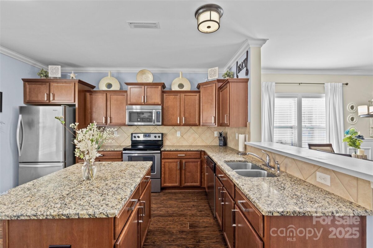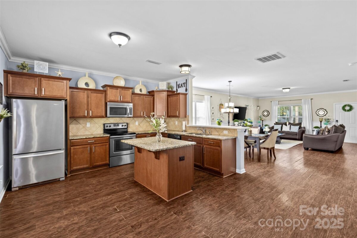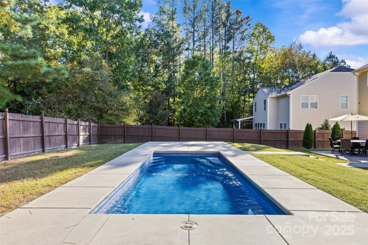 Located on a serene street in Silver Run, this move-in-ready 3-bedroom / 2.5-bathroom home features a flexible floor plan and an in-ground saltwater pool! This two-story residence features exterior stone accents and a covered front porch, creating a lovely first impression. The gracious, open floor plan has an easy flow and beautiful natural light. The living room is a great gathering space designed with entertaining in mind and has elegant wainscoting to define the space. The dining area is well-suited for intimate dinner parties and hosting larger groups. Eat-in kitchen features warm, wood-tone cabinetry, ample storage, granite countertops, a dedicated pantry, and an island with bar seating. A main-level bonus room overlooking the backyard offers lots of flexibility and would be a wonderful home office or den. Spacious primary suite located on the second level boasts a walk-in closet and an en-suite bathroom with a double vanity, soaking tub, and separate shower. Secondary bedrooms are well-appointed and share access to a full bathroom with a shower/tub combination. The upstairs loft makes for an incredible multi-use space! Thoughtful details and conveniences throughout, including a laundry room on the same level as all of the bedrooms and an attached two-car garage. Amazing, highly usable 0.23-acre lot ideal for indoor-outdoor living. Fully-fenced backyard is an outdoor oasis thanks to an in-ground saltwater pool and patio perfect for grilling, lounging, or entertaining. Located only minutes from the attractions and restaurants in Fort Mill, Ballantyne, and Blakeney!