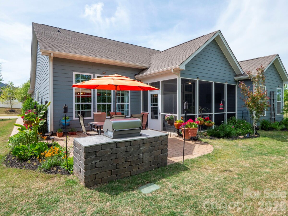 Stunning one-level “Coastal†model home in the highly sought-after Walnut Creek community of Indian Land! Double entry doors welcome you into a beautifully appointed interior, while soaring 12 foot ceilings and an open floorplan create an impressive, light-filled living space accented by upgraded lighting, a custom built-in with wine fridge, gas fireplace, and new carpet in all bedrooms. The showstopper boasts seamless indoor outdoor living with a peaceful, craftsman style screened porch and adjacent paver patio with built-in gas grille, overlooking a private, wooded backyard, your perfect retreat. Professionally manicured landscaping and irrigation complete the exterior. Enjoy low South Carolina taxes, top-rated schools, and Walnut Creek’s incredible amenities, all just minutes from shopping, dining, Ballantyne, and downtown Waxhaw.