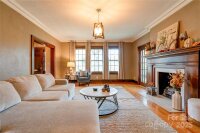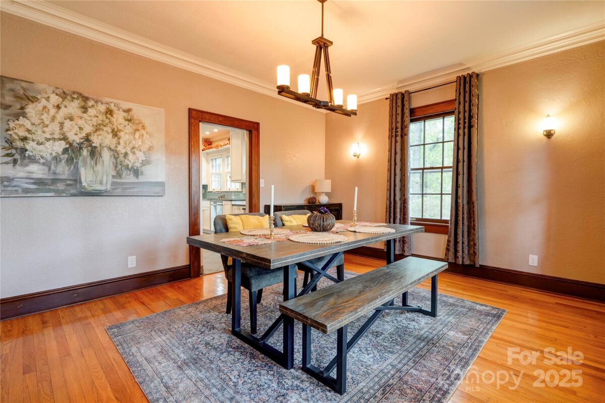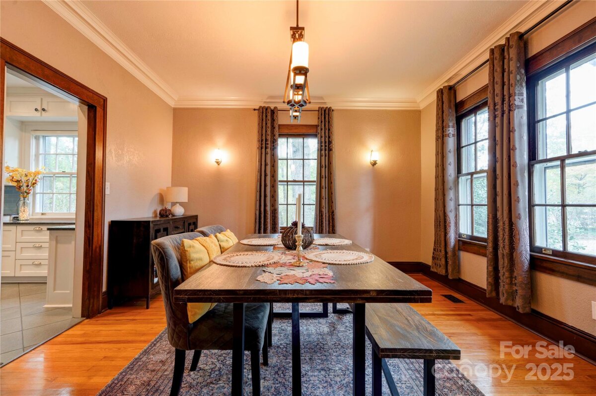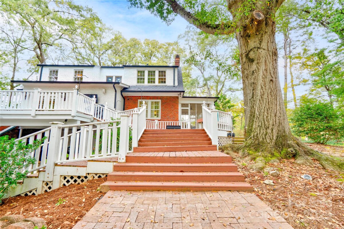 This stunning home blends historic character with modern comfort—and is recognized in the National Register of Historic Places, honoring its architectural significance and timeless appeal. Original features include high ceilings, custom moldings, original doors, and gleaming hardwood floors. Spacious rooms, beautiful details, and custom light fixtures throughout add warmth and elegance. The chef’s kitchen is a true showpiece—featuring granite countertops, stainless steel appliances including a Viking gas cooktop, custom cabinetry with backlighting, backsplash, and a walk-in pantry. Adjacent laundry/utility room includes sink and storage. French doors open to a multi-level deck that wraps around to a screened porch—perfect for relaxing or entertaining. The home offers excellent flow and is truly built to entertain. And don’t miss the incredible basement speakeasy with a bar area—not included in heated square footage but ideal for unforgettable gatherings and personal enjoyment. Located on a private, wooded, and beautifully landscaped 0.84 acre lot and just 1 mile from Uptown! This is a must-see home full of charm, history, and lifestyle-enhancing features. Schedule your showing today! New roof and gutters. Electrical has been upgraded also.