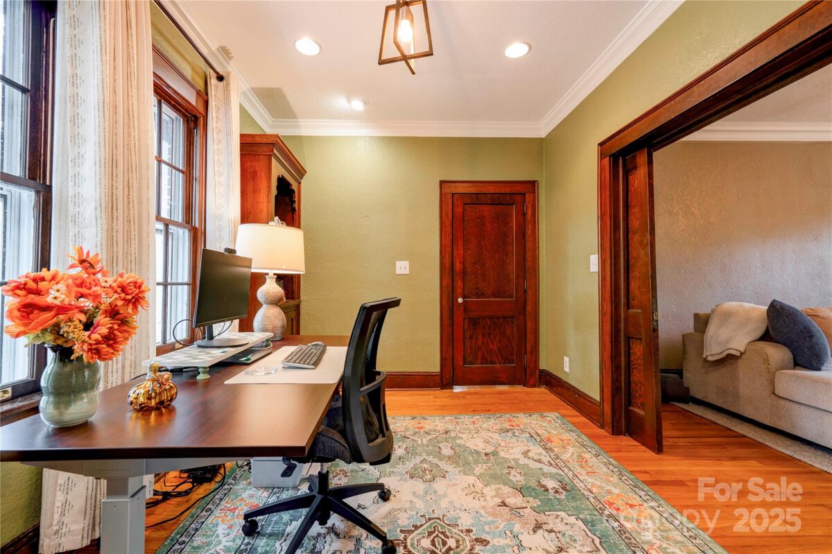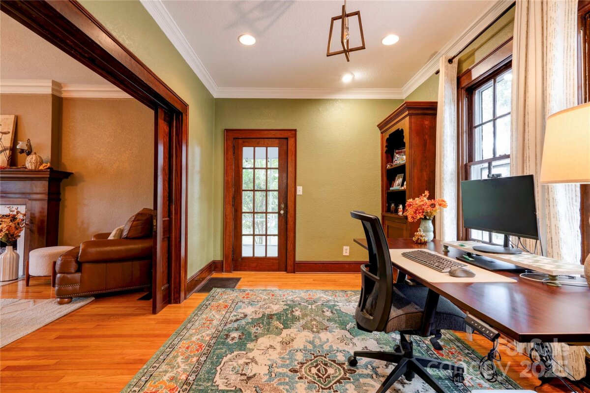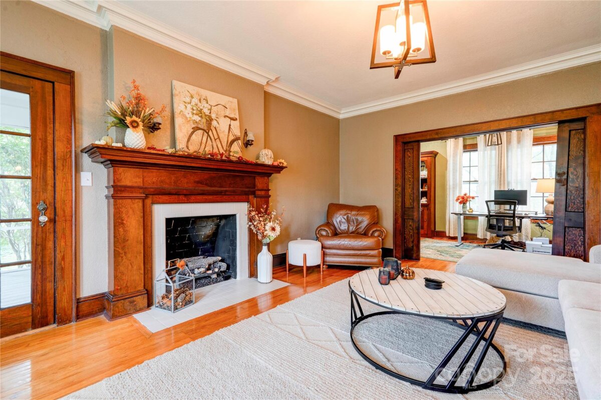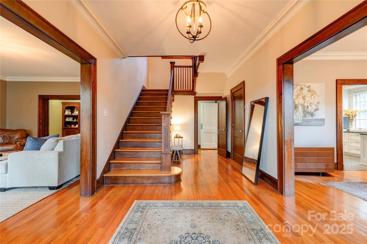 This stunning home blends historic character with modern comfort—and is recognized in the National Register of Historic Places, honoring its architectural significance and timeless appeal. Original features include high ceilings, custom moldings, original doors, and gleaming hardwood floors. Spacious rooms, beautiful details, and custom light fixtures throughout add warmth and elegance. The chef’s kitchen is a true showpiece—featuring granite countertops, stainless steel appliances including a Viking gas cooktop, custom cabinetry with backlighting, backsplash, and a walk-in pantry. Adjacent laundry/utility room includes sink and storage. French doors open to a multi-level deck that wraps around to a screened porch—perfect for relaxing or entertaining. The home offers excellent flow and is truly built to entertain. And don’t miss the incredible basement speakeasy with a bar area—not included in heated square footage but ideal for unforgettable gatherings and personal enjoyment. Located on a private, wooded, and beautifully landscaped 0.84 acre lot and just 1 mile from Uptown! This is a must-see home full of charm, history, and lifestyle-enhancing features. Schedule your showing today! New roof and gutters. Electrical has been upgraded also.