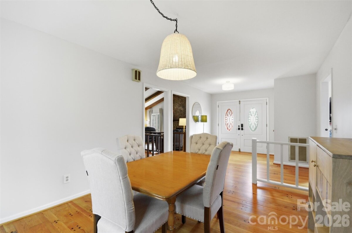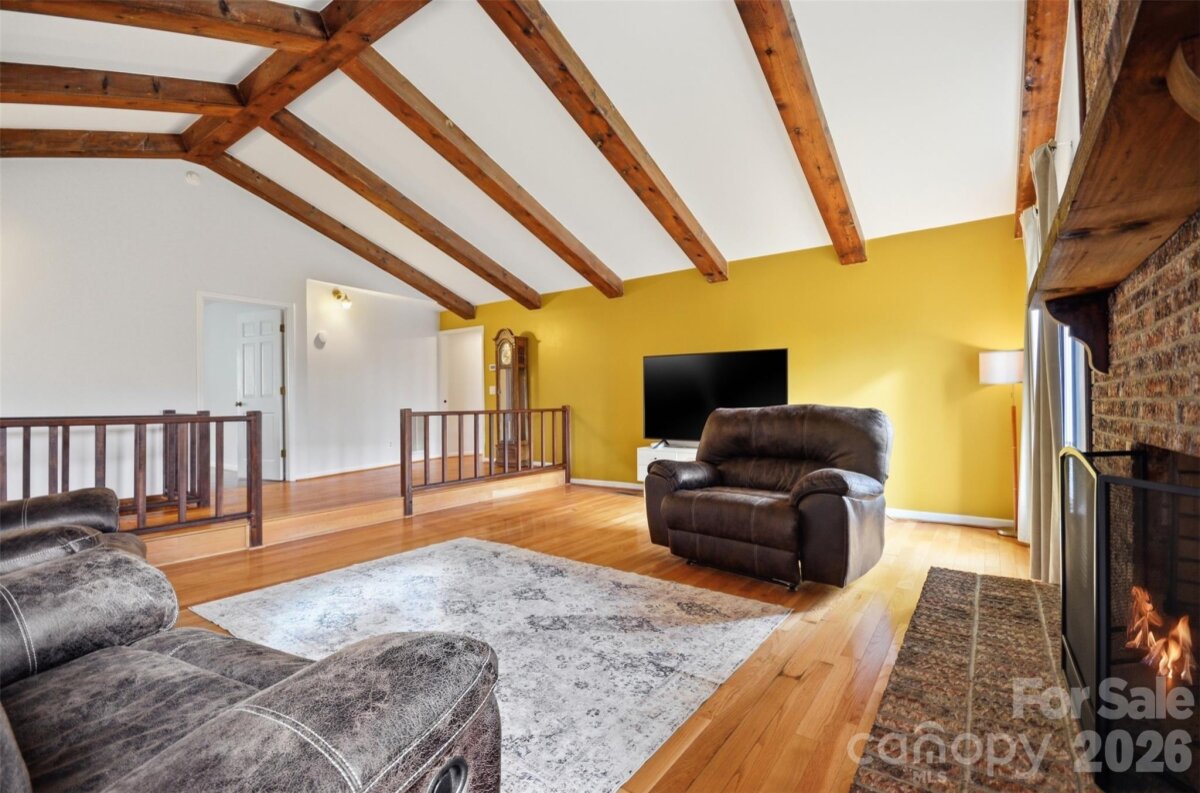 Nestled on approximately 3.09 private acres, made up of 4 separate parcels with over 450 feet of road frontage! This home offers beautiful vertical wood siding exterior and is the perfect blend of character, space, and setting. Positioned on a gentle hill with a long circular driveway, the property creates a welcoming first impression while providing both privacy and functionality. The immediate yard is fenced, offering a defined space for pets, play, or outdoor enjoyment. Enter through charming French doors into a thoughtfully updated interior featuring hardwood floors throughout the main level. The home offers a dedicated dining room and a character-filled kitchen, complete with a cozy breakfast nook surrounded by windows, perfect for enjoying morning coffee while overlooking the front lawn where local wildlife is often seen. The living room showcases vaulted cathedral ceilings with rustic wood accents and a fireplace that serves as a warm focal point. The main level includes three bedrooms and two full bathrooms, with all bedrooms offering walk-in closets for ample storage. The walk-out basement expands the living space significantly, featuring a large den or bonus room with a wood-burning fireplace, a recreation area currently used as an exercise space, an additional full bathroom, and a massive storage area. This flexible layout offers endless possibilities for entertaining, hobbies, or multi-generational living. Outdoors, enjoy your own private walking trail and peaceful natural surroundings, all while being conveniently located near local favorites such as Purple Martin Greenway and Crestview Park. Easy access to major highways makes commuting to Spartanburg or Asheville simple and convenient.