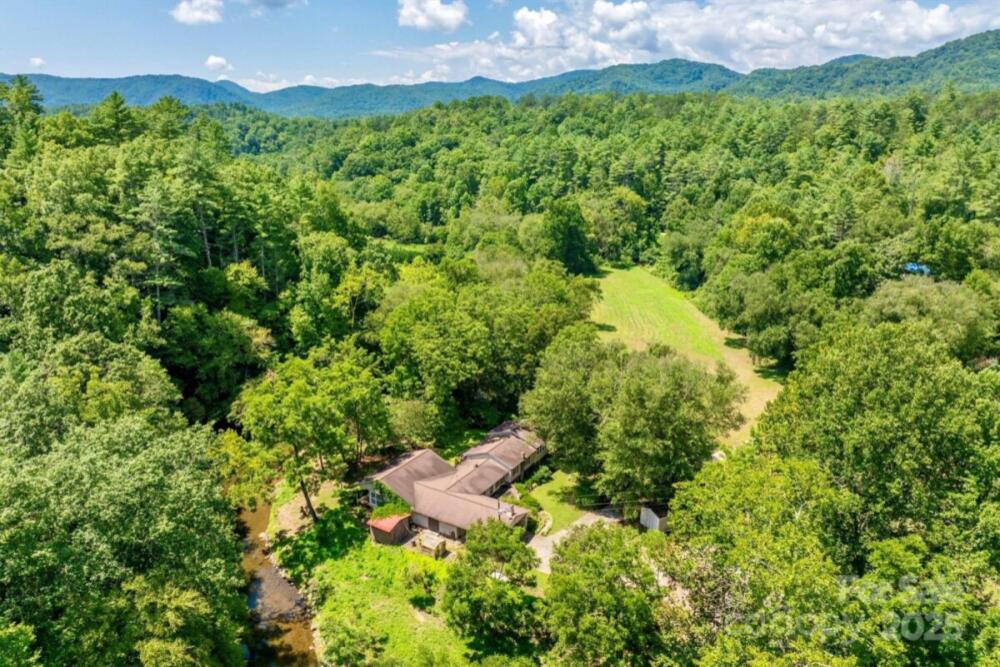 BACK-ON-MARKET Buyer's contingency home-sale fell through unexpectedly. This riverfront property is now available and ready for a new owner to create a paradise home, farm, or camp. 7.67 acres with +/- 900 ft of river front on the sparkling clean Johns River. Cross the bridge over the river and breath in mountain air, ripe with honeysuckle in summer and autumn leaves in fall. Johns River splashes by, sparkling in the sunlight. Fish for trout; tube down the river and circle back and go again! Watch the video! Pisgah National Forest borders a portion of the opposite side of the river. The national forest and Blue Ridge Mountains surround the river valley. Mild winters/summers. Sold "AS IS". Needs renovations. All systems working last time seller had them on. 2 kitchens, 2 laundry rooms, large 4-season room (not counted in sq. footage), great-room with fireplace, built-in bookcases. No septic permit on file. Barn w/RV hookup, loft, work benches, sheds on side. Remodel plans available. +/-4 flat acres could be pasture. In flood plain. Builder built berm around house and since then, flood water didn't reach house until Hurricane Helene, Sep. 2024, when basement flooded. Seller removed sheetrock, flooring, down to studs and concrete floors in basement. Blowing Rock/Lenoir/Morganton NC minutes away. Charlotte-82 miles Asheville-76 miles