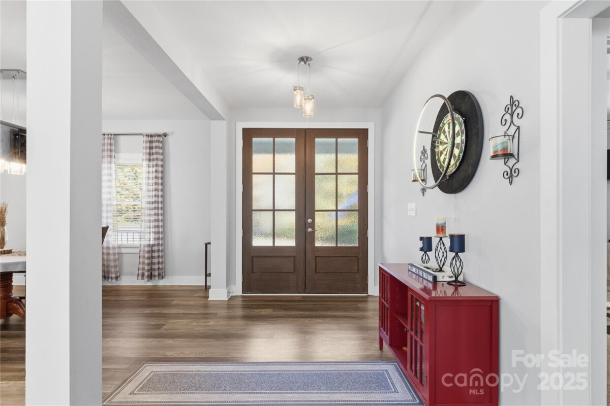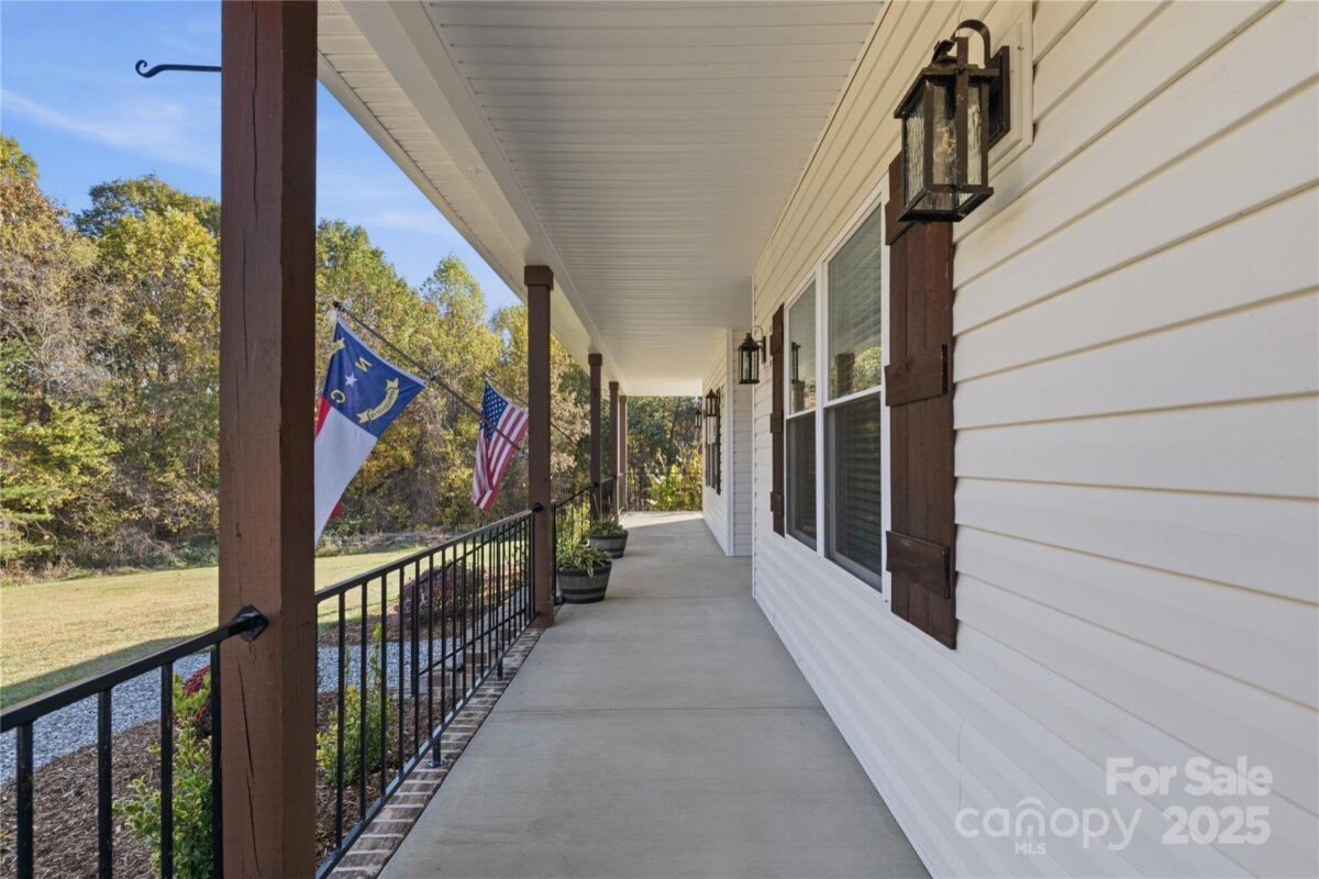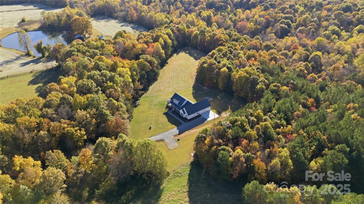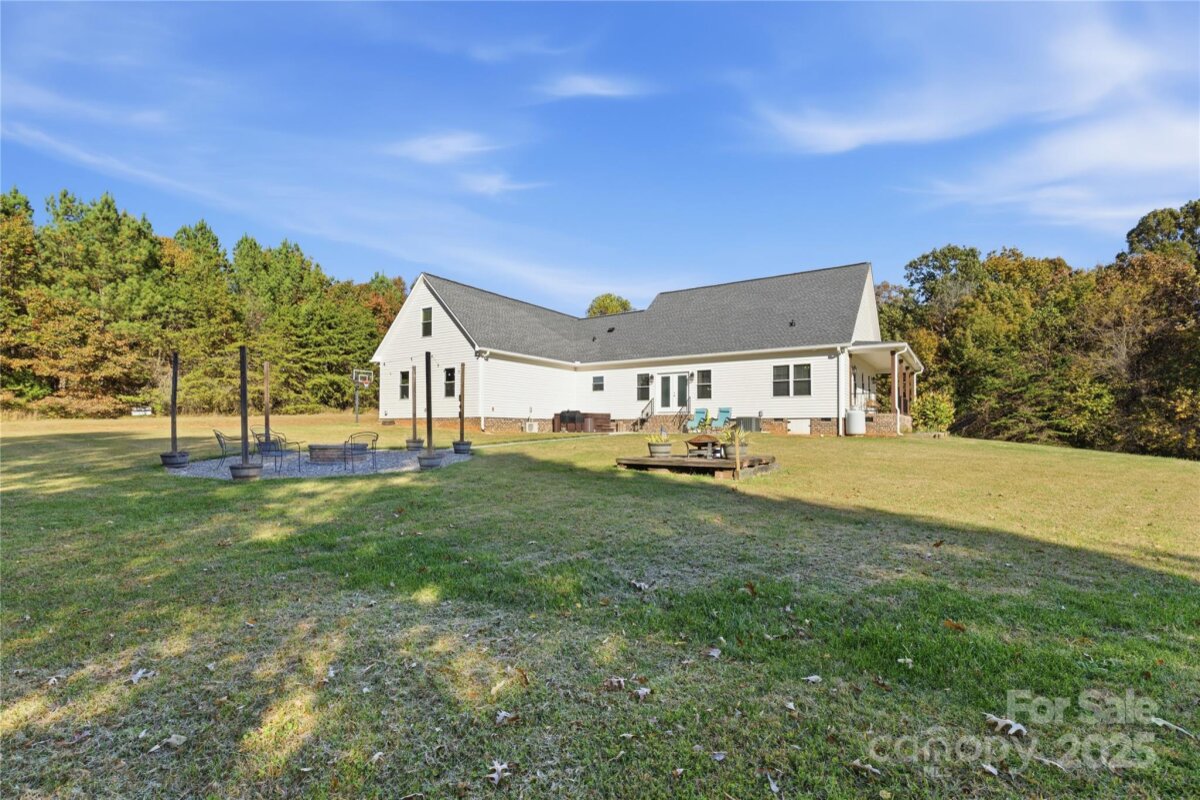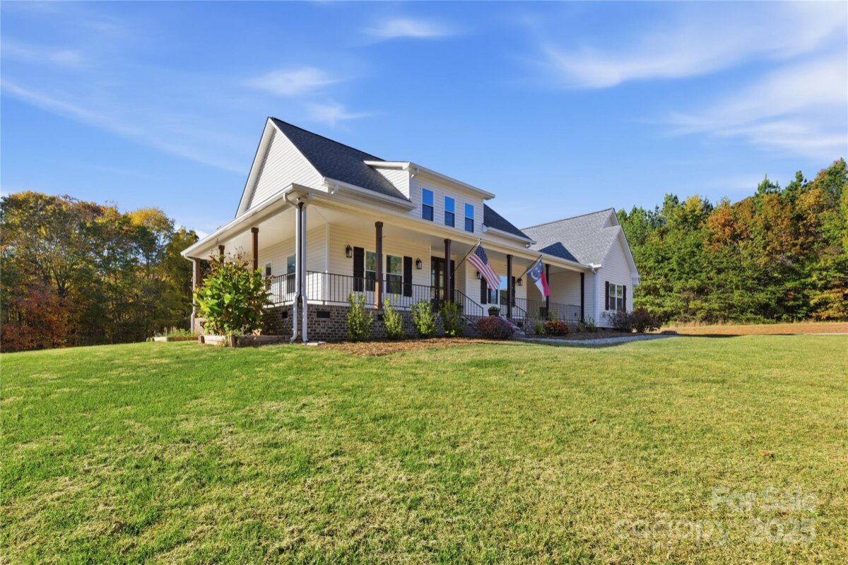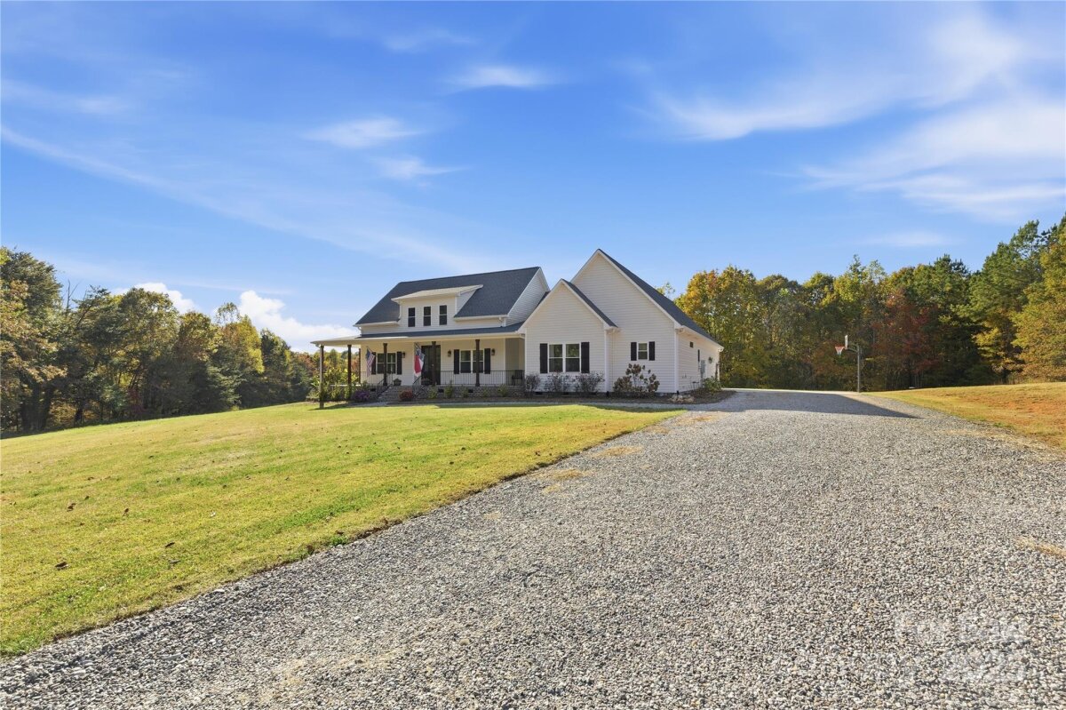 Claim your piece of Carolina countryside of 16 acres in North Iredell featuring a 2600+ sqft custom built 2022 farmhouse w/ wrap around porch, wood columns, and gorgeous 8ft double entry way doors w/ etched glass. Its where Privacy, Tranquility, and comfort come together with no restrictions just your land, your home, and your rules. Home has 3 bedrooms and 2.5 baths with open living concept & split bedroom floor plan, finished room over garage, Floor to ceiling stone fireplace in living room that has vaulted ceiling, massive laundry room with potential to get creative, a girls dream closet in primary bedroom and large walk in tile shower w/ a tandem shower head system, tray ceiling in kitchen with walk-in pantry, soft close cabinets/ drawers, leathered granite tops and stainless steel appliances. From the living room walk out the French doors to a 35.7x 16ft patio with Hot tub and relax or enjoy these fall nights by the firepit with family and friends. The home was purposefully built off the main road & nestled between the woods for that secluded and discrete setting. There is a generator hook up and separate outlet/breaker for a deep freezer in garage. A small pond is on property currently not filled due to broken dam but can be fixed if desired. Placement of Septic had been considered with the intent to add a pool on the side of the house in the future.