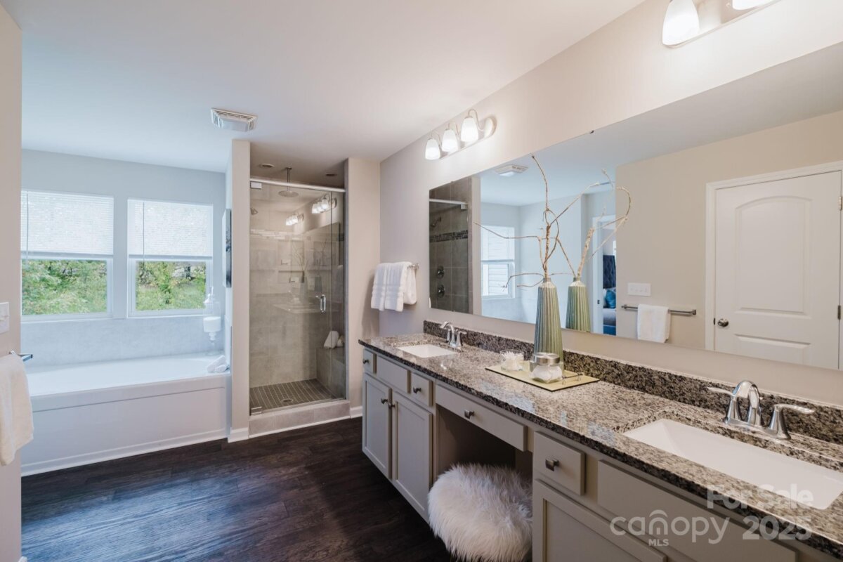 Spacious 4-bedroom, 3.5-bath home featuring fresh interior paint, new LVP flooring, and new carpet throughout. The main level offers a chef’s kitchen with a large eat-in island, breakfast nook, and butler’s pantry that connects to the formal dining room. Multiple living areas include a sunroom/office and a large loft—ideal for a homework area, craft space, or additional lounge. The primary suite includes a generous sitting room and a spa-inspired bath with dual vanities, water closet, garden tub, and separate shower. Three additional bedrooms provide ample space for family and guests. With two dining areas, versatile living spaces, and thoughtful design throughout, and a fenced backyard for outdoor living, this home is ready for its next owner.