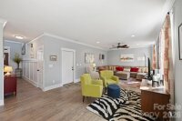 Welcome home! This beautifully designed property blends timeless finishes with modern comfort, offering space to live, relax, and entertain in style. Step inside to find gorgeous wood floors flowing throughout the entire first floor, up the staircase, and into the upper hallway. Soaring 10-foot ceilings on the main level and 9-foot ceilings upstairs create an airy, open feel throughout the home. The kitchen and living room connect seamlessly in a bright, open-concept layout perfect for gatherings large or small. The kitchen is a true centerpiece, featuring quartz countertops, 42-inch cabinets, a stylish tile backsplash, stainless steel appliances, and a spacious island ideal for meal prep or casual seating. Upstairs, the primary suite is a retreat of its own. The tray ceiling with a wood accent adds warmth and character, while the generous layout provides plenty of room to unwind. The large walk-in closet includes custom shelving for optimal organization. The en-suite bath offers dual granite vanities, a stand-alone soaking tub, and a glass-enclosed shower for a spa-like experience at home. Out back, your private oasis awaits. Enjoy the deck overlooking a heated saltwater pool, a patio with bar area for entertaining, and a yard that extends well beyond the fence line. With over half an acre, there’s plenty of space to spread out, play, and enjoy the outdoors. This home truly has it all—style, space, and exceptional indoor-outdoor living.