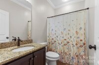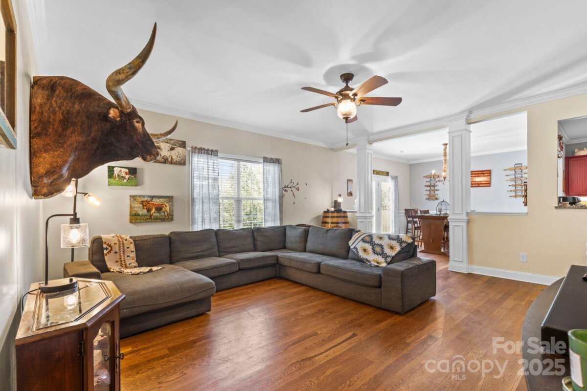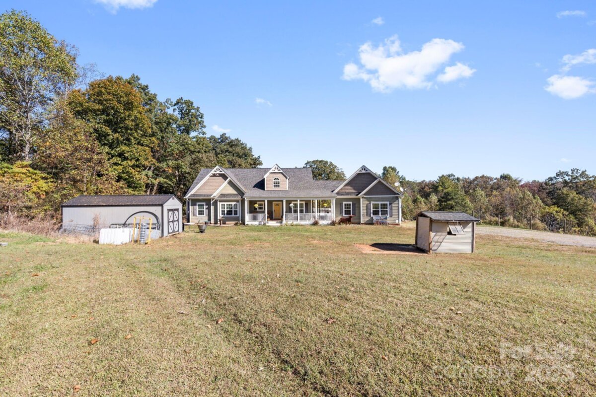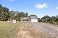 Custom built estate on nearly 14 acres in North Iredell. The gated entryway leads to a mix of fenced pastures and wooded land with a stream. The 4 bedroom, 3 bathroom home offers over 3,000 sqft of heated living area with a full walk-out unfinished basement. The large kitchen features granite countertops, Moen fixtures, an island, recessed lighting and a walk-in pantry. The kitchen opens to a large dining area overlooking the back pasture. The main level primary suite hosts a spacious bathroom with dual vanities, a luxurious shower with body jets, dual shower heads, and a river rock floor. The primary bathroom also has a soaking tub and large walk-in closet. The main level hosts two additional bedrooms and another full bathroom. Upstairs offers an additional private retreat - a full bedroom, full bathroom, and second living area or rec room. The full basement has 10' ceilings, superior walls, and roughed-in plumbing for future expansion. The septic system is permitted for 5 bedrooms - the basement is ready to be expanded into a second living quarters! The home has 2 gas tankless water heaters and dual split heat pumps with gas back up. The property is currently used as a cattle ranch with a barn, outbuilding, hay and grain silos and could easily be converted to an equestrian facility or mini farm. Fully fenced with woven wire and top electric strand. A creek winds through the middle of the property with a land bridge for easy crossing. Gated entryway is solar powered. 500 gallon propane tank is in-ground and owned. 2 car garage attached to home via a covered breezeway.