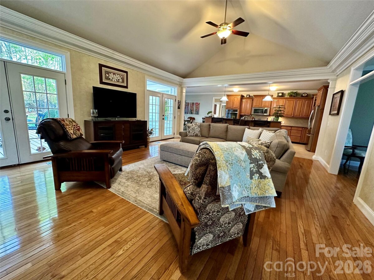 This stunning 3400+ square foot homel is situated on 2 acres and features a spacious main level, perfect for entertaining. The property includes a fenced backyard, raised bed garden, and several fruit trees, ideal for gardening enthusiasts. The main level boasts an open floor plan allowing seamless flow between living spaces. A larger than standard double garage with ample space for additional storage. The architechtual shingles and exterior paint completed within the last six years. Custom kitchen cabinets next to a walk in pantry for ample storage. All kitchen appliances were replaced in 2022. Office/Library complete with gas logs for a great escape.