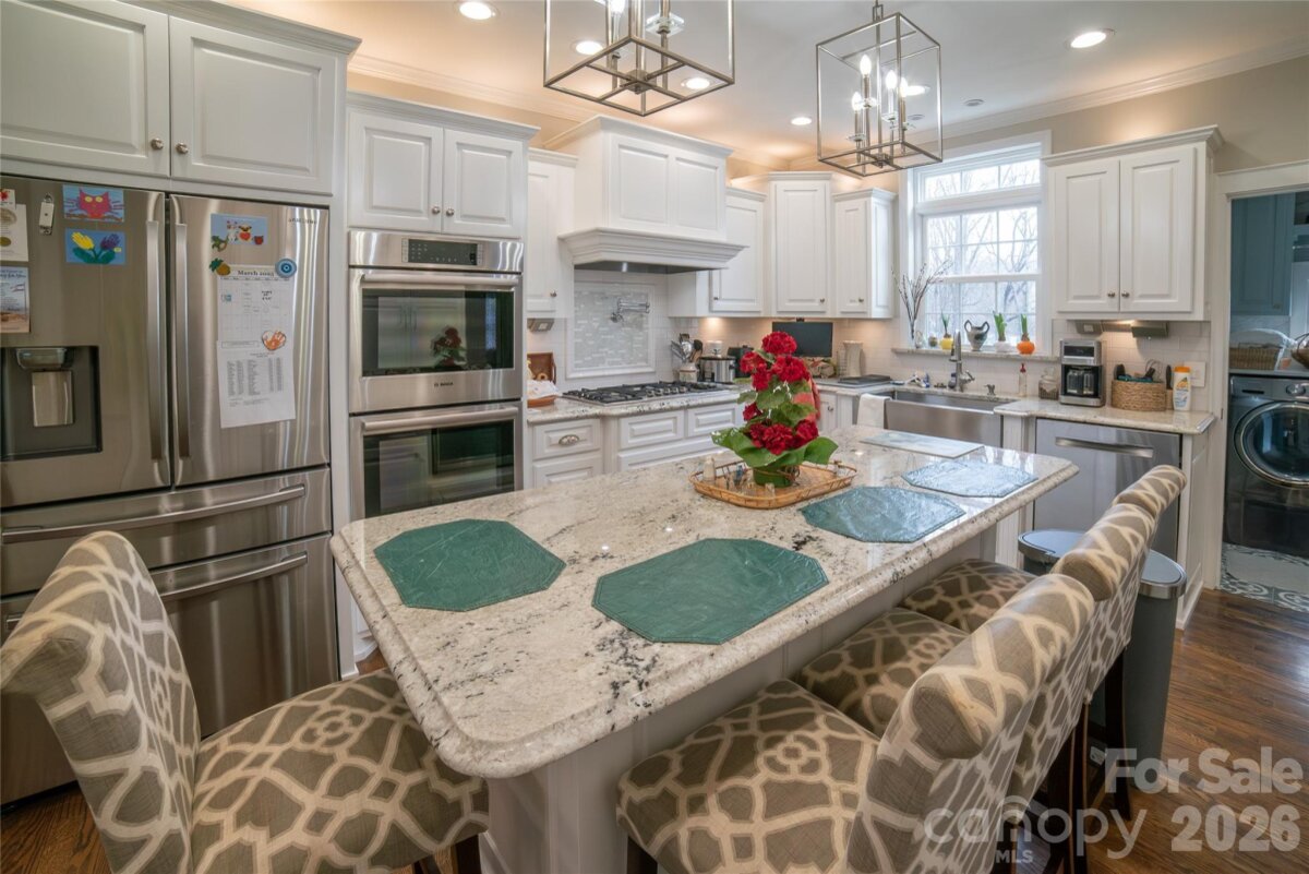 Step inside and fall in love with this beautifully updated home, where timeless charm meets thoughtful modern upgrades. With 9-foot ceilings and hardwood floors throughout, the open layout creates an inviting space perfect for both everyday living and entertaining. The designer kitchen is truly the heart of the home, featuring abundant cabinetry including a full wall of pantry storage, a large island with seating, breakfast bar, generous granite countertops, and high-end finishes. Cooking enthusiasts will appreciate the 5-burner gas cooktop, double wall ovens, pot filler, farmhouse sink, soft-close drawers, and convenient pull-out shelving. The dining room showcases a stunning bay window with an elegant marble window seat, creating the perfect place to relax with morning coffee or evening conversation. The spacious great room features a cozy gas log fireplace and opens to a charming side porch. Just off the great room, a versatile office could easily serve as a library, music room, or creative space. The beautifully designed laundry room offers additional cabinetry and pantry storage, while the recently remodeled bathroom adds modern style and comfort. Outdoor living is just as inviting, with a picturesque side porch perfect for relaxing, plus a back deck ideal for grilling and entertaining, all overlooking a private yard—perfect for gathering with family and friends. A basement workshop and storage area provides plenty of space for hobbies and projects.