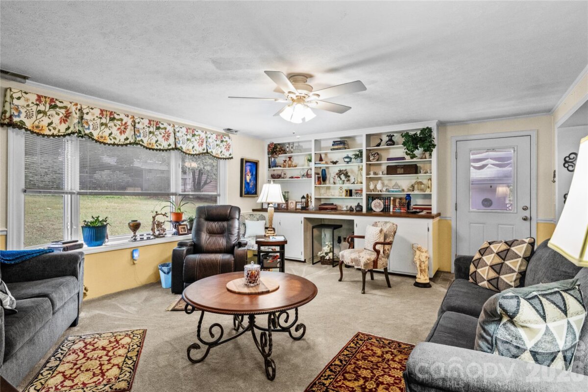 This beautifully maintained one-level 3-bedroom, 2-bathroom home offers more than meets the eye! Inside, you'll find gleaming hardwood floors, elegant crown and chair molding, and built-in cabinets throughout. The bright family room is filled with natural light, while the cozy living room features a charming gas log fireplace—perfect for relaxing evenings. Enjoy meals in the official dining room or sunny breakfast nook. Extra storage closets provide added convenience. Outside, unwind on the welcoming front porch or peaceful back patio overlooking the fully fenced back yard with mature, beautiful landscaping. A detached garage adds additional storage and flexibility. With its thoughtful layout, timeless finishes, and undeniable charm, this home is ready to be loved for years to come.