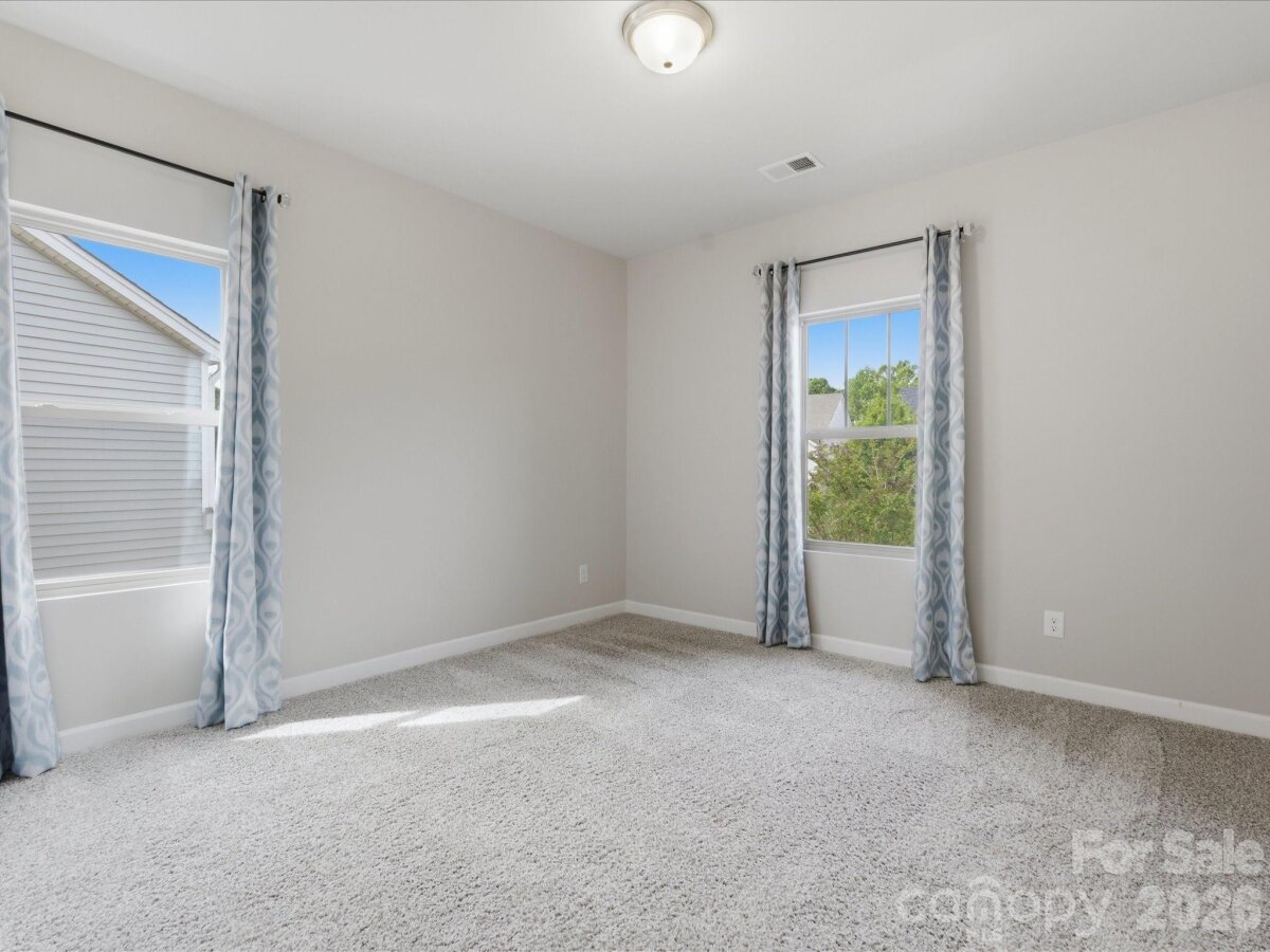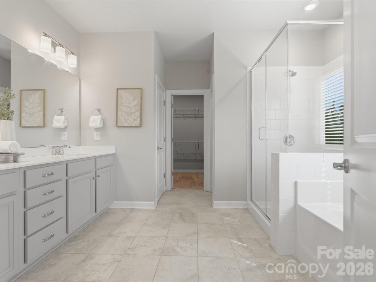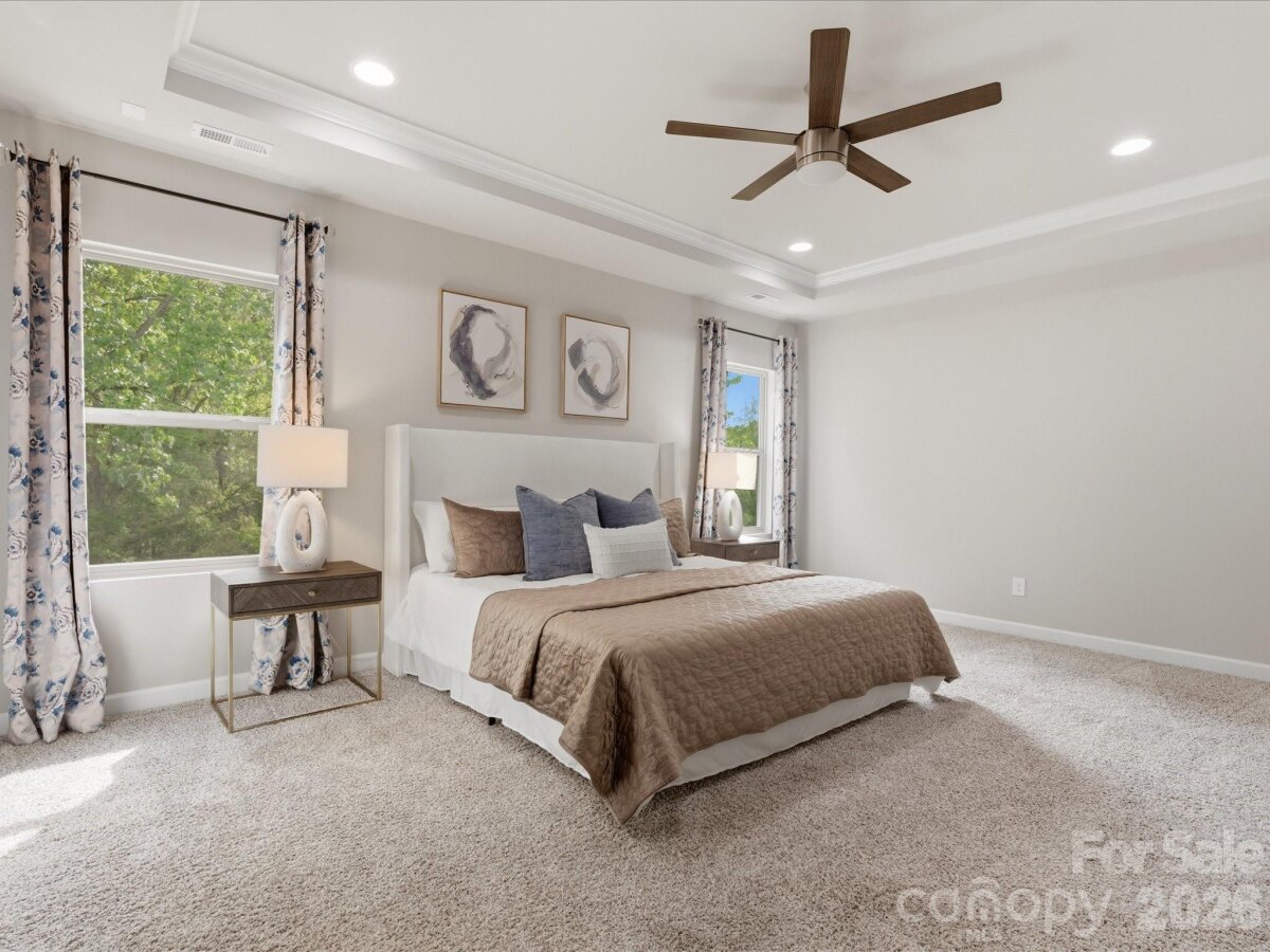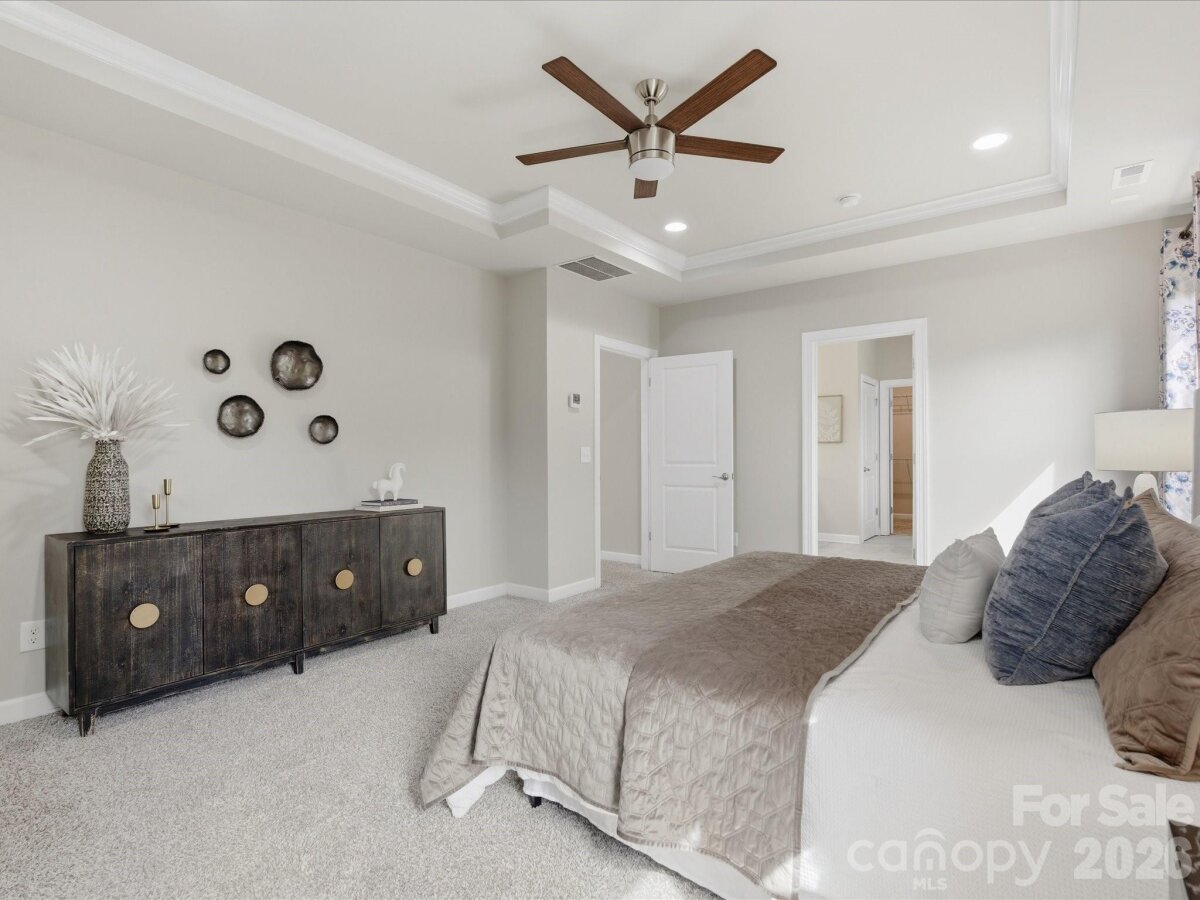 A truly stunning five-bedroom, three-bath residence in Fort Mill, showcasing timeless stone and brick accents and a gracious covered front porch that warmly welcomes you home. Step inside the two-story foyer that opens to a spacious formal dining room with tray ceiling—perfect for gathering and hosting. The kitchen is both stylish and functional, featuring lovely white cabinetry and tiled backsplash, wall oven, gas cooktop with vented hood, a large island with bar seating, a breakfast area, and both a butler’s pantry and walk-in pantry. It flows seamlessly into the light and bright family room boasting a gas fireplace, creating a warm, comfortable space where everyone can come together. Enjoy the fenced backyard that backs to woods, offering added privacy and a peaceful setting to relax or unwind. The main floor also includes a guest bedroom, along with a convenient drop zone/mud area and full bath for everyday ease. Upstairs, you’ll find an expansive loft/media room, three additional bedrooms, a full bath, and a spacious laundry room. The primary suite is a true retreat, complete with a tray ceiling and an en suite bath with a double-sink vanity, soaking tub, separate shower, private water closet, and a large walk-in closet. Neutral paint and flooring throughout enhance the home’s warm feel. Welcome home!