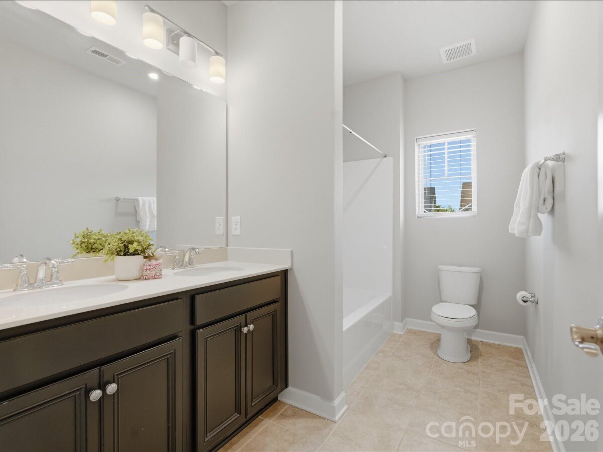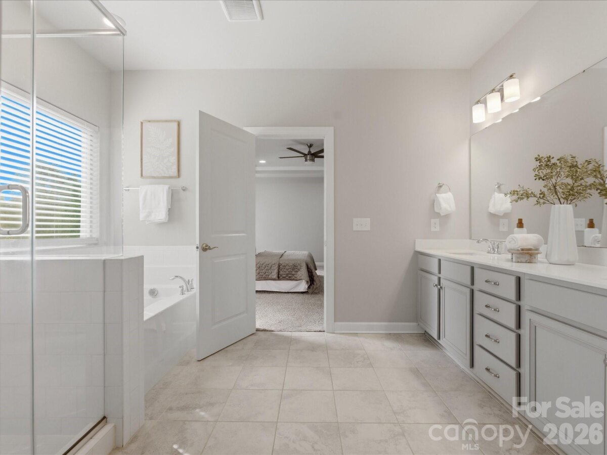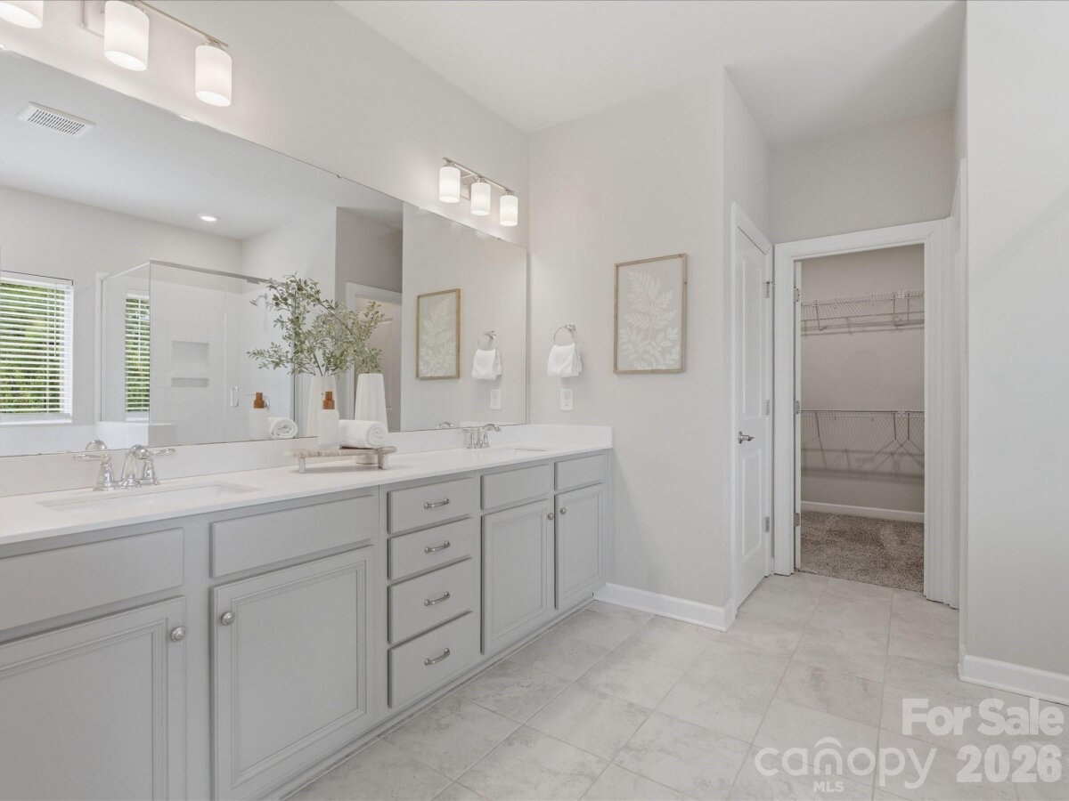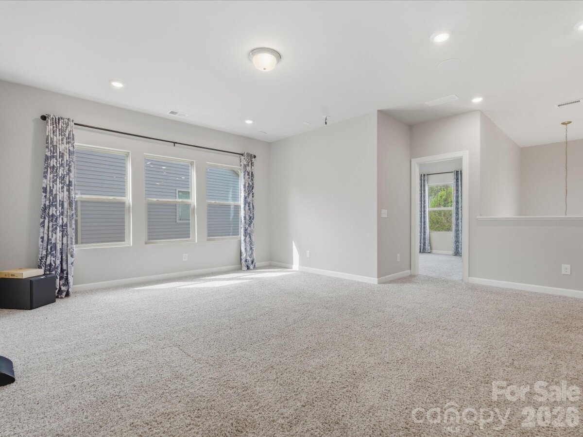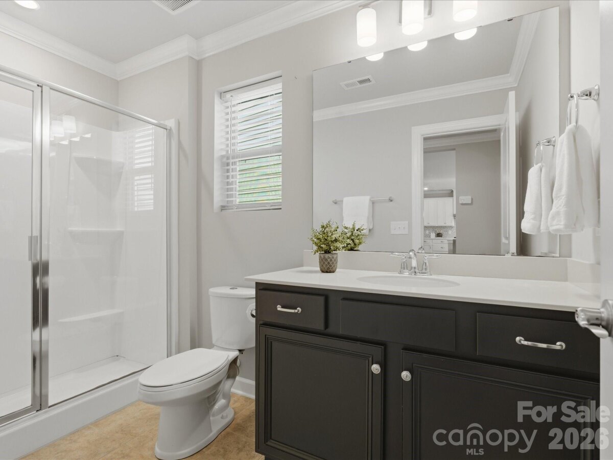 A truly stunning five-bedroom, three-bath residence in Fort Mill, showcasing timeless stone and brick accents and a gracious covered front porch that warmly welcomes you home. Step inside the two-story foyer that opens to a spacious formal dining room with tray ceiling—perfect for gathering and hosting. The kitchen is both stylish and functional, featuring lovely white cabinetry and tiled backsplash, wall oven, gas cooktop with vented hood, a large island with bar seating, a breakfast area, and both a butler’s pantry and walk-in pantry. It flows seamlessly into the light and bright family room boasting a gas fireplace, creating a warm, comfortable space where everyone can come together. Enjoy the fenced backyard that backs to woods, offering added privacy and a peaceful setting to relax or unwind. The main floor also includes a guest bedroom, along with a convenient drop zone/mud area and full bath for everyday ease. Upstairs, you’ll find an expansive loft/media room, three additional bedrooms, a full bath, and a spacious laundry room. The primary suite is a true retreat, complete with a tray ceiling and an en suite bath with a double-sink vanity, soaking tub, separate shower, private water closet, and a large walk-in closet. Neutral paint and flooring throughout enhance the home’s warm feel. Welcome home!