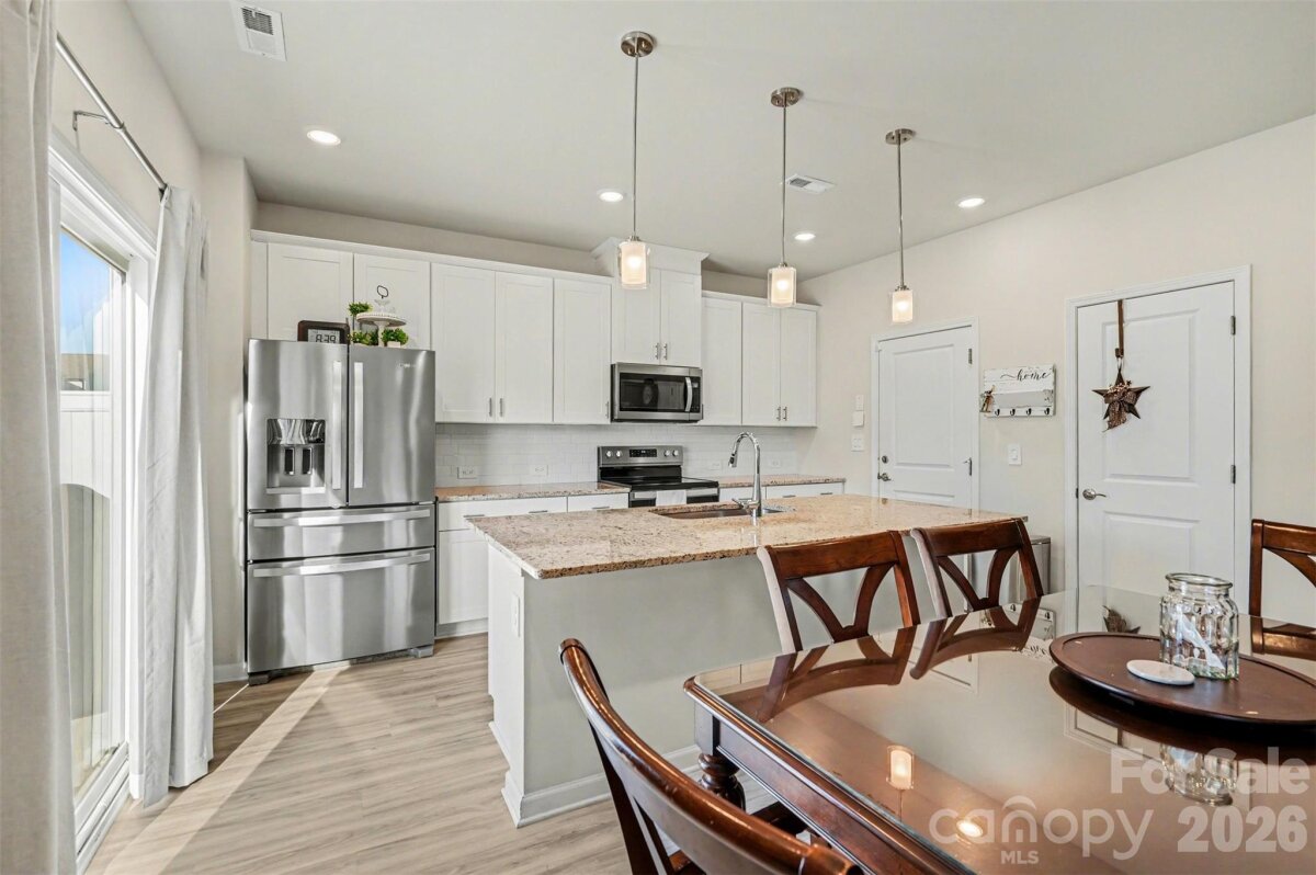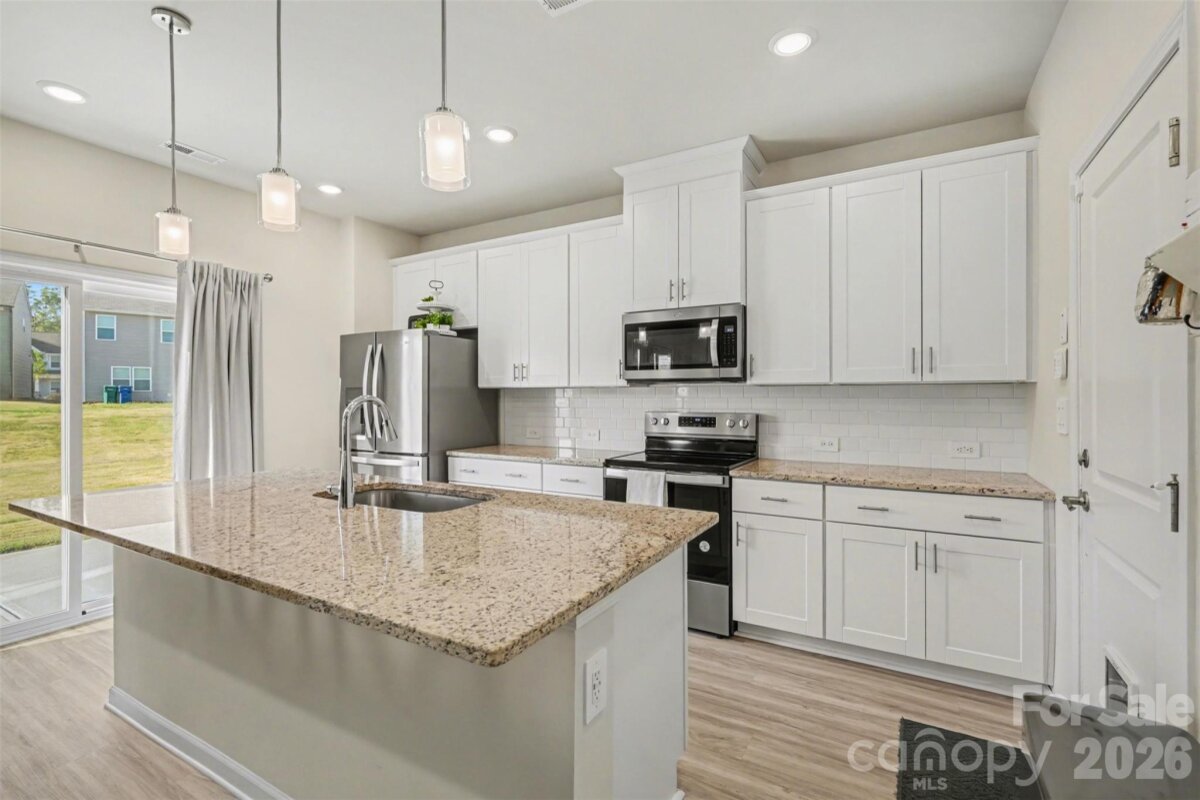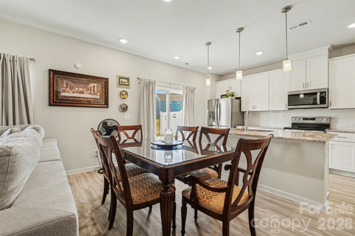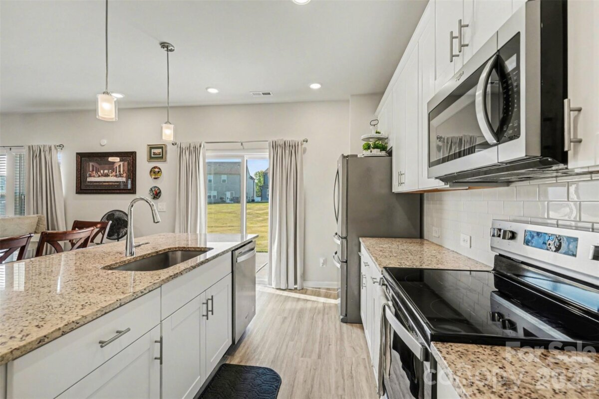 Why wait for new construction??? Don't miss out on this 2024 build 3 BR, 2.5 BA home with an attached 2 car garage, LVP floors throughout the first floor, open concept with lvingroom open to the kitchen with stainless steel appliances, center island with barstool seating and new pendant lighting. Sliders open to large, back yard backing to natural area. All 3 bedrooms are upstairs including the primary with private bathroom with dual sink and vanities. Upstairs laundry room.