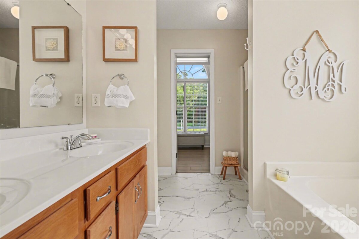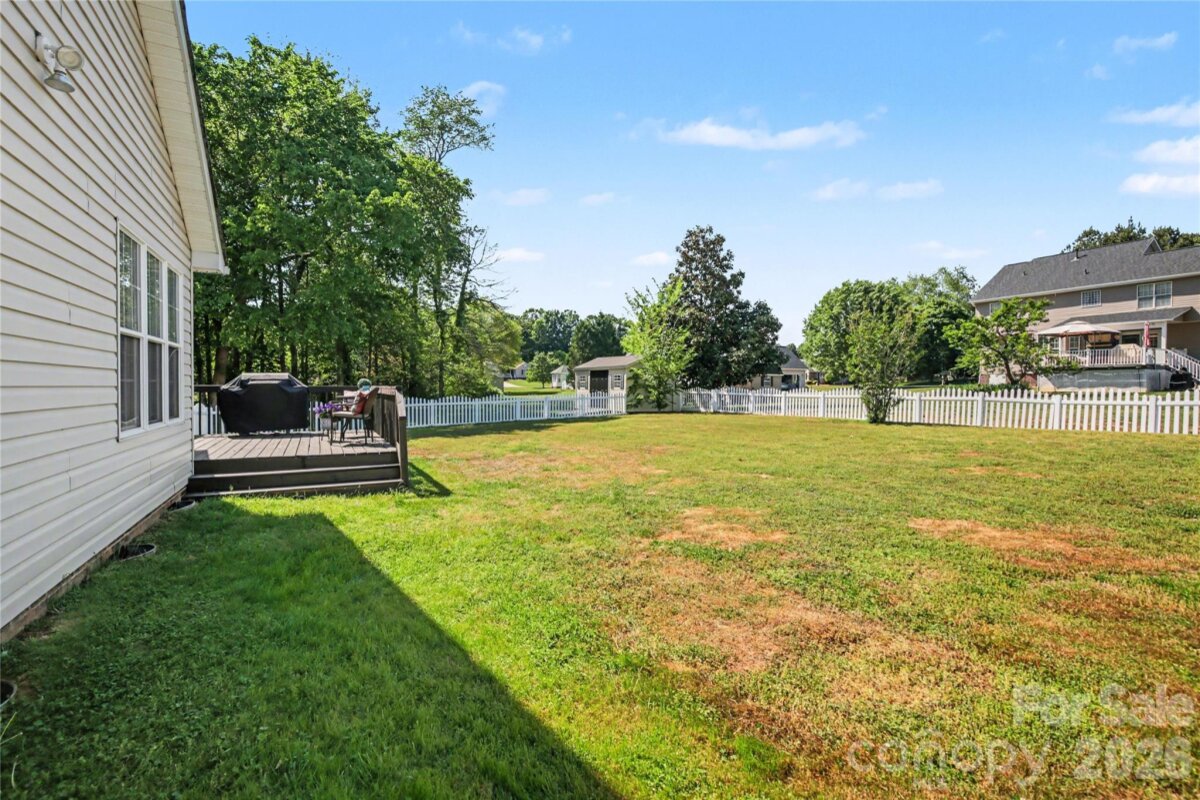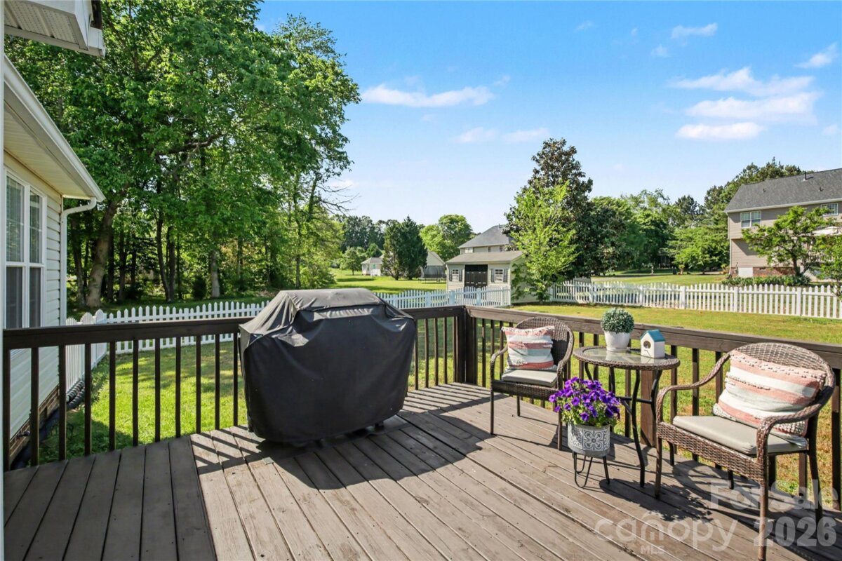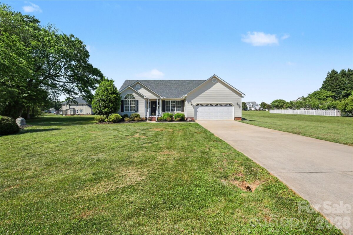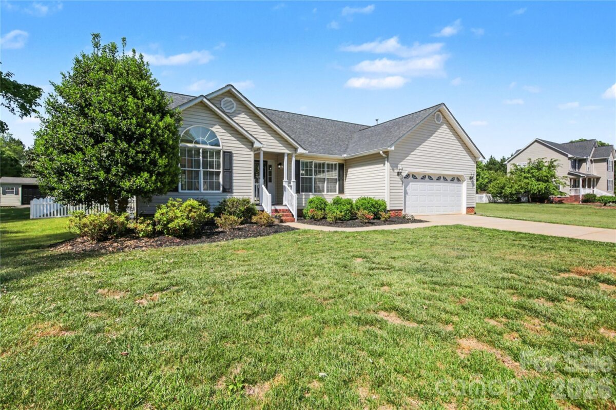Adorable and move-in ready, this single-level home in Grace Ridge is the nicest ever! Perfectly situated on 2-level lots, totaling 1.05 acres, (extremely rare for this neighborhood), with plenty of room for you to expand building. This home has over 1,700 sq ft, with an open and inviting foyer leading to a great room with a fireplace and gas logs. Owner's suite is generous in size, master bathroom has double vanities, a garden tub and a walk-in shower. The primary closet is the largest ever!! Just pull up a bench and sit back! Formal dining room, kitchen with breakfast area is sunny and bright, Detached 2-car garage, deck and fenced back yard. Outbuilding for mower, and extra tools. NEW FLOORING INSTALLED EXCEPT BEDROOMS Grace Ridge features many amenities, with clubhouse, pool, and basketball court.