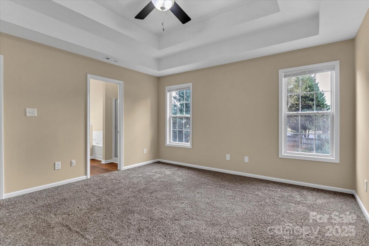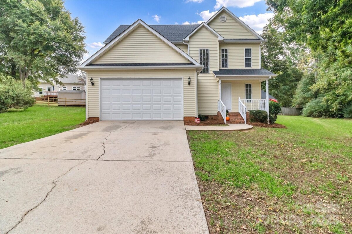 Tucked at the end of a peaceful cul-de-sac, this beautifully maintained 3-bedroom, 2.5-bath home offers the perfect blend of comfort, style, and everyday convenience! From the moment you arrive, the inviting covered front porch welcomes you with classic curb appeal and a sense of warmth that carries throughout the home. Set on a spacious .29-acre lot, the property provides plenty of room to relax, entertain, and play. Step inside to a bright, open layout enhanced by neutral paint throughout and abundant natural light. The main level features a gracious flow between living, dining, and kitchen spaces — ideal for both daily living and entertaining. The great room serves as the heart of the home, complete with a cozy fireplace that sets the tone for family gatherings or quiet evenings at home. The kitchen is thoughtfully designed for both style and function, showcasing a new Samsung stainless steel range and microwave, complemented by white cabinetry and generous counter space. The adjoining dining area offers the perfect spot for casual meals or formal dinners with views of the backyard. Upstairs, the spacious primary suite feels like a true retreat, highlighted by a double tray ceiling, a large walk-in closet, and an en-suite bath featuring a separate soaking tub and walk-in shower. Two additional bedrooms share a full bath and offer flexibility for family, guests, or a home office. Step outside to enjoy the wide, open backyard — perfect for outdoor entertaining, gardening, or simply enjoying evenings under the stars. With its level lot and cul-de-sac location, you’ll appreciate both privacy and peace of mind. Additional features include a two-car garage, covered front porch, and an unbeatable location close to schools, shopping and dining. This home delivers the perfect balance of comfort, space, and style!!