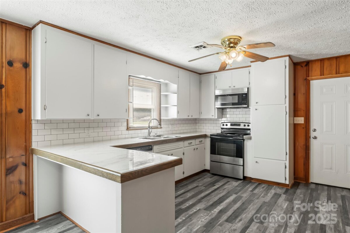 This well-maintained 3-bedroom, 1-bath home offers 1,437 square feet of comfortable living space, combining classic character with modern improvements. Original hardwood floors run throughout most of the home and have just been professionally refinished, while the kitchen and bathroom feature durable new flooring for added practicality. The kitchen has been updated with new countertops, tile backsplash, and freshly painted cabinets. The bathroom features updated countertops along with new sinks, offering a clean and cohesive look. Fresh interior paint throughout most of the home enhances the bright and welcoming atmosphere. Additional improvements include a roof installed in 2020, updated windows that provide excellent natural light and improved efficiency, updated plumbing and electrical, and a new garage door at the basement level. The full unfinished basement offers ample storage or potential for future customization. A fully fenced yard provides privacy and outdoor space, and the two-car garage adds convenience and functionality. Located just minutes from I-40, with easy access to restaurants, shopping, and other amenities, this home presents a unique opportunity to own a property that blends original charm with key updates in a highly convenient location.