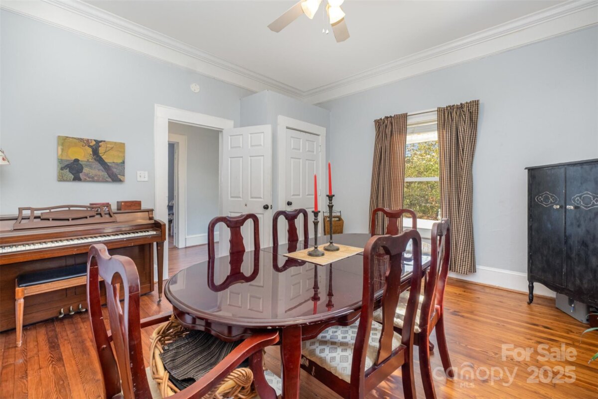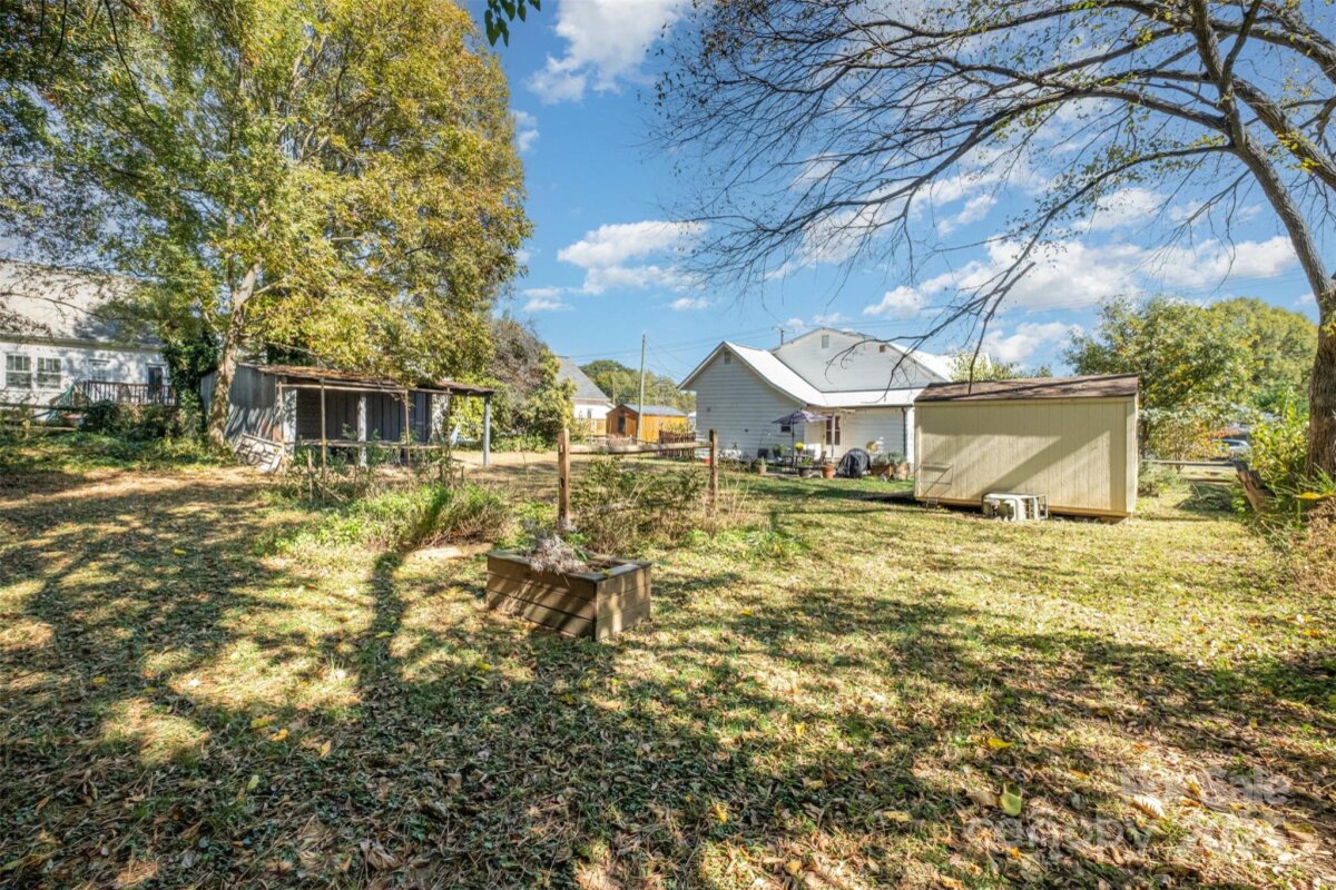 Step into a piece of Mooresville history with this charming 3-bedroom, 2-bath home nestled in the heart of downtown! Built in 1918, this 1,381 sq. ft. home features hardwood floors that add timeless character and warmth. Outside, you’ll find a true gardener’s paradise — thoughtfully landscaped with a wide variety of native and fruit-bearing plants. Along the driveway, enjoy seasonal color from wildflowers, red rhododendrons, lantana, and fruit trees including peach and apple varieties. The front yard showcases an impressive collection of trees and perennials, from American lindens and sourwoods to magnolia, crepe myrtle, and even a fig and pomegranate tree. Out back, a fully fenced 1,056 sq. ft. garden with raised beds is ready for your green thumb, complete with established asparagus, walking onions, and horseradish. The property includes two separate storage buildings, providing flexible space for supplies, a potential studio, or a handy workshop. This rare downtown gem offers a blend of old-world charm and natural beauty — all just steps from Mooresville’s shops, restaurants, and local favorites.