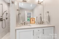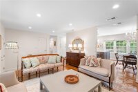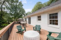 Welcome to Greentree! This beautifully updated all-brick ranch with a finished basement is perfectly located between Myers Park, SouthPark, and Cotswold. This fully renovated home offers a seamless blend of modern finishes and timeless charm. Step inside to a bright, open-concept living and dining area that flows effortlessly into the stylish kitchen, all while overlooking a huge, private, flat backyard from the newly added deck! (2024). The main level features the primary suite with a walk-in closest and double vanity, plus two additional bedrooms and a full hall bathroom. The finished lower level offers incredible flexibility with a large family or living room complete with a cozy gas fireplace, an additional bedroom or flex space perfect for guests/extra space, a full bath, and a generous 2-car garage with plenty of workspace. Walk straight outside to a new (2024), beautiful outside patio perfect for entertaining! Don't miss the two additional storage rooms! One is used as an art studio (including a/c & added in 2024!), and the other is a large walk-in storage closet.