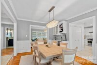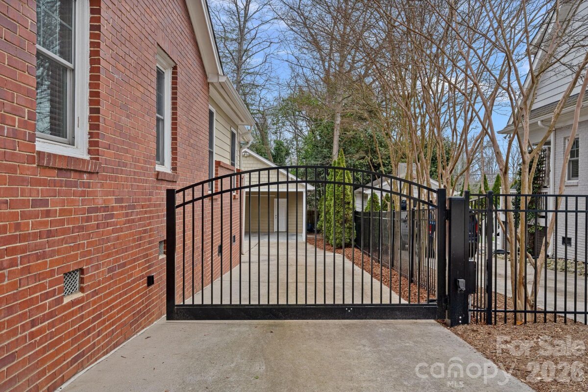 Welcome to this beautifully appointed home in Myers Park, where timeless character meets modern convenience. This updated ranch with a welcoming front porch sits on a friendly street, ideally positioned near many of Charlotte’s most beloved destinations. Throughout the home, fresh paint, traditional wainscoting, curated lighting, and hardwood or tile flooring underscore its classic character while the open, modernized layout supports today's lifestyle. The thoughtfully renovated kitchen showcases quartz countertops, a Zellige tile backsplash, Kingston Brass faucet, Rohl sink, stainless steel appliances, built-in cabinetry with coffee/espresso bar and drop zone access to the backyard. The stately living room with fireplace flows seamlessly into the formal dining room enhanced with additional cabinetry and dry bar coupled with wine fridge. Both have been updated with elegant chandeliers and scones. A sunlit breakfast nook transitions to the expansive family room, designed for both relaxed daily living and sophisticated entertaining. Double doors open to the back deck, while a discreetly placed half bath and laundry area complete this inviting gathering space. Privately situated on the opposite wing, the primary suite is a serene retreat, featuring French doors that open gracefully to the backyard and custom-fitted closet. Secondary bedrooms also offer tailored storage solutions. The renovated hall bath introduces a new vanity, mirror, and sconces, complemented by striking Schumacher wallpaper, while preserving the original tilework for a touch of timeless appeal. Outdoors, the meticulously maintained grounds provide a secluded oasis with mature landscaping, an extended-height privacy fence, in-ground irrigation, and an automated gate for added discretion. The two-car carport with wired storage presents exceptional flexibility, whether retained as-is or reimagined as a garage or future ADU. This home offers an exceptional balance of tradition, luxury, and convenience just minutes from Selwyn Avenue, Montford Drive, Park Road Shopping Center, and the scenic Cross Charlotte trail!