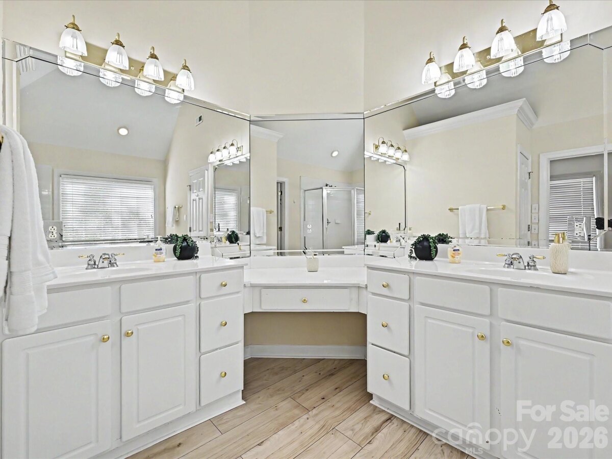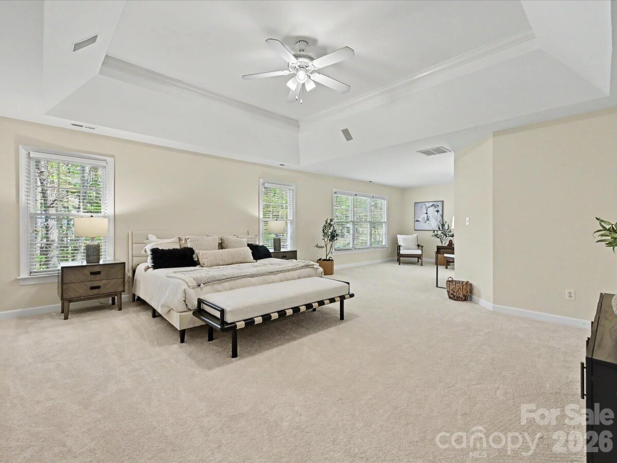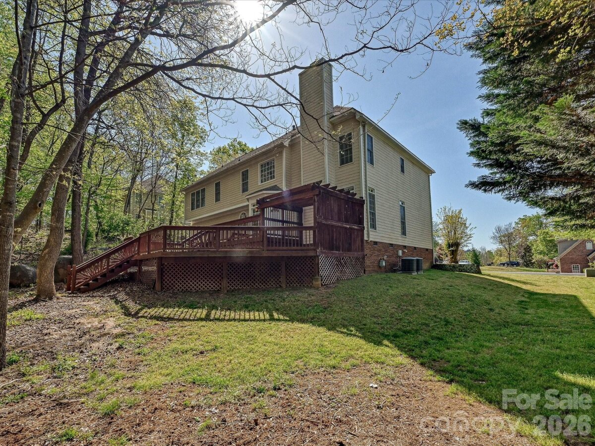 Enjoy one of Fort Mill's most sought after neighborhoods in this classic Regent Park beauty. With its dramatic two story foyer, tiered staircase, soaring ceilings, and 4 bedrooms 3.5 bath open and spacious design offering comfort, convenience, and charm, this stunning, almost 3,000 sqft home is ready for its new owner. Main level living features Formal Dining, Formal Living/Office, Great Room with wood burning fireplace, Casual Dining, and a show stopper Kitchen that has just been re-energized with quartz island and counters, tile backsplash, and stainless appliances including a 2 drawer dishwasher, farmers sink, double ovens, refrigerator, and gas cooktop. Downstairs laundry can accommodate gas or electric dryer. Upstairs Primary Suite (32 x 18) is super-sized to have its own lounge/sitting area. Its luxury bath offers large dual vanities along with a make-up vanity, separate tub and shower, and a very generous walk in closet in addition to a purse/shoe closet. Three secondary bedrooms, one with an en suite and the other two with a Jack/Jill are all good sized with new flooring, wood framed mirrors, and large closets. Enjoy nature's sights and sounds from dual decks (the lower one is hot tub ready) and the wooded privacy of mature trees. .43 ac lot. Make those memories around the fire pit telling stories and making s'mores. An oversized, two car side load garage has plenty of room for storage. Premium home warranty in place. Neighborhood amenities include tennis, pickleball, sports court, and pool along with green space and trails. Close proximity to Charlotte, Pineville, Fort Mill, and the Greenway along with Award winning Fort Mill Schools make 3104 Highgate the perfect place to call home. Current yearly taxes reflect those of non-resident owner. Owner resident taxes would be considerably less.