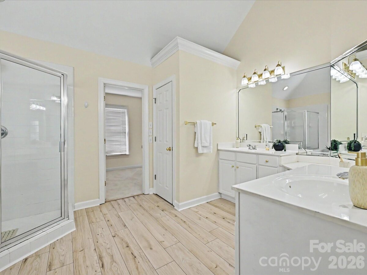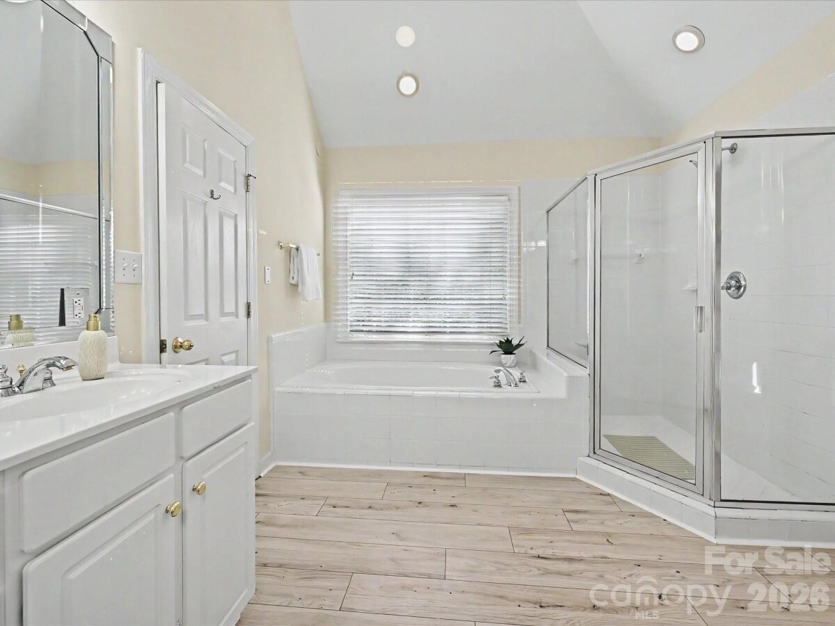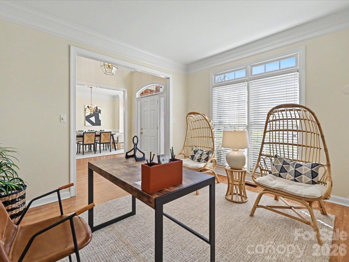 Enjoy one of Fort Mill's most sought after neighborhoods in this classic Regent Park beauty. With its dramatic two story foyer, tiered staircase, soaring ceilings, and 4 bedrooms 3.5 bath open and spacious design offering comfort, convenience, and charm, this stunning, almost 3,000 sqft home is ready for its new owner. Main level living features Formal Dining, Formal Living/Office, Great Room with wood burning fireplace, Casual Dining, and a show stopper Kitchen that has just been re-energized with quartz island and counters, tile backsplash, and stainless appliances including a 2 drawer dishwasher, farmers sink, double ovens, refrigerator, and gas cooktop. Downstairs laundry can accommodate gas or electric dryer. Upstairs Primary Suite (32 x 18) is super-sized to have its own lounge/sitting area. Its luxury bath offers large dual vanities along with a make-up vanity, separate tub and shower, and a very generous walk in closet in addition to a purse/shoe closet. Three secondary bedrooms, one with an en suite and the other two with a Jack/Jill are all good sized with new flooring, wood framed mirrors, and large closets. Enjoy nature's sights and sounds from dual decks (the lower one is hot tub ready) and the wooded privacy of mature trees. .43 ac lot. Make those memories around the fire pit telling stories and making s'mores. An oversized, two car side load garage has plenty of room for storage. Premium home warranty in place. Neighborhood amenities include tennis, pickleball, sports court, and pool along with green space and trails. Close proximity to Charlotte, Pineville, Fort Mill, and the Greenway along with Award winning Fort Mill Schools make 3104 Highgate the perfect place to call home. Current yearly taxes reflect those of non-resident owner. Owner resident taxes would be considerably less.