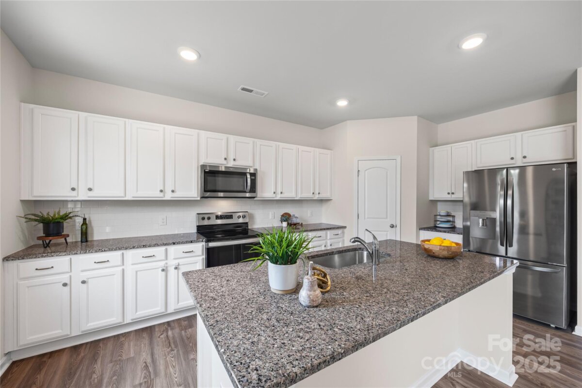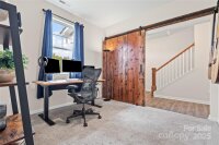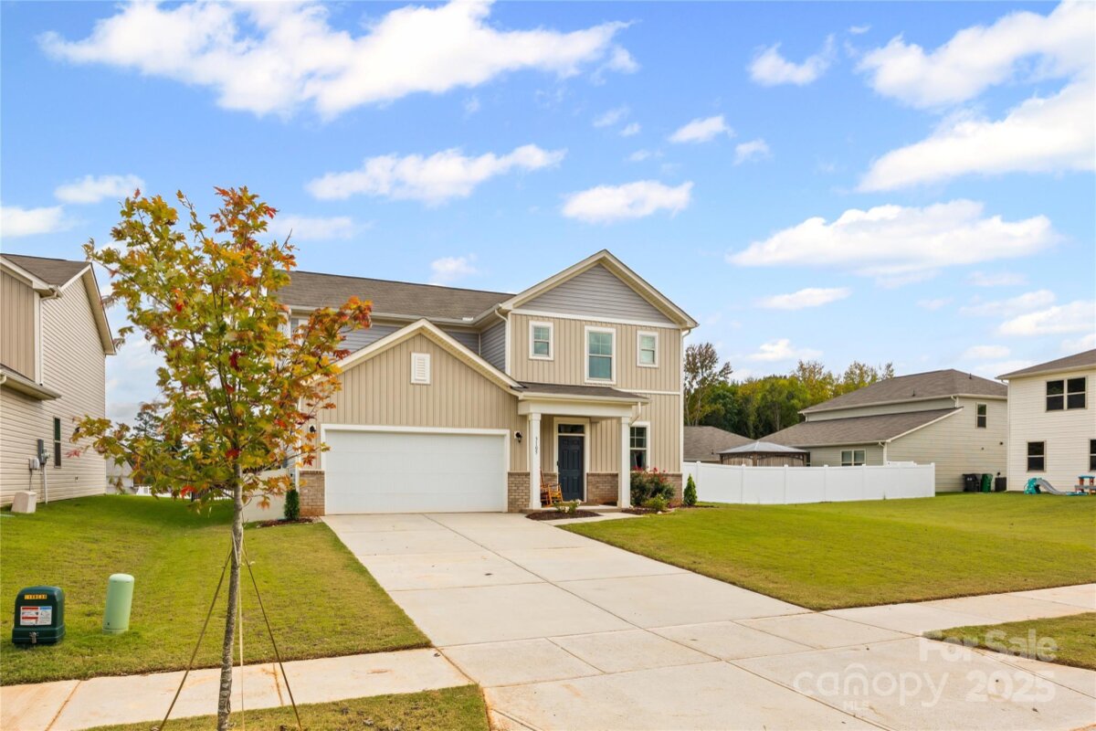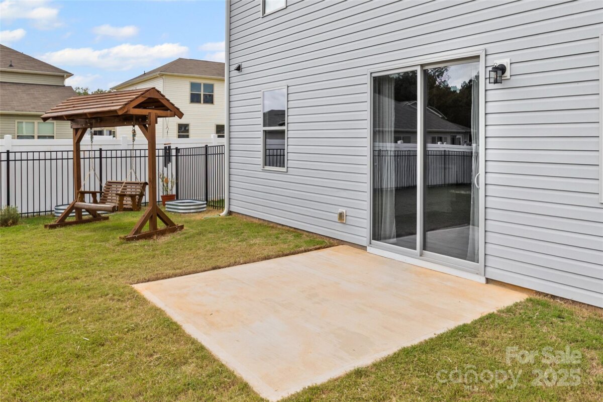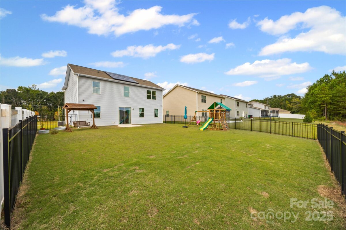 Welcome to this adorable and well-maintained home that combines cottage charm with modern convenience! This like-new home offers a bright and open floor plan, perfect for entertaining and everyday living. Step inside to find low-maintenance vinyl plank flooring throughout the main level, paired with fresh paint for a clean, updated feel. A custom barn door adds character to the dedicated office space—ideal for working from home. The spacious loft area upstairs provides flexible space for a playroom, media room, or additional lounge area. The heart of the home is the stylish kitchen, featuring white cabinetry, granite countertops, stainless steel appliances, and a large center island with seating—perfect for gatherings. The open-concept layout flows seamlessly into the dining area with easy access to the rear patio, and the spacious living room is filled with natural light, creating a warm and inviting space. Upstairs, you’ll find neutral carpet, a convenient laundry room, and three generously sized bedrooms, including a primary suite with a large walk-in closet and an en suite bath featuring a dual sink vanity, walk-in shower, and private water closet. Enjoy the outdoors in your fully fenced backyard with black aluminum fencing, ideal for pets, play, or relaxing weekends. A 2-car garage offers ample storage and convenience. This home is truly move-in ready and packed with charm—don't miss the opportunity to make it yours! Note: Playset and swing in backyard to convey. Home also has solar panels that will be paid off at closing.