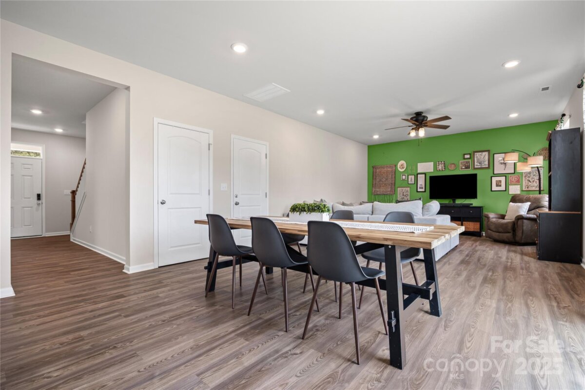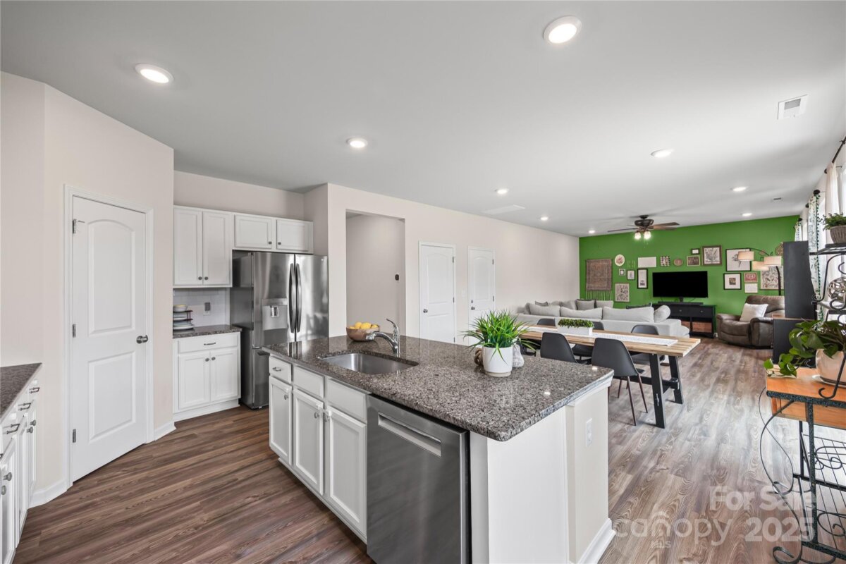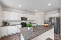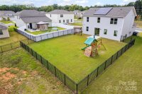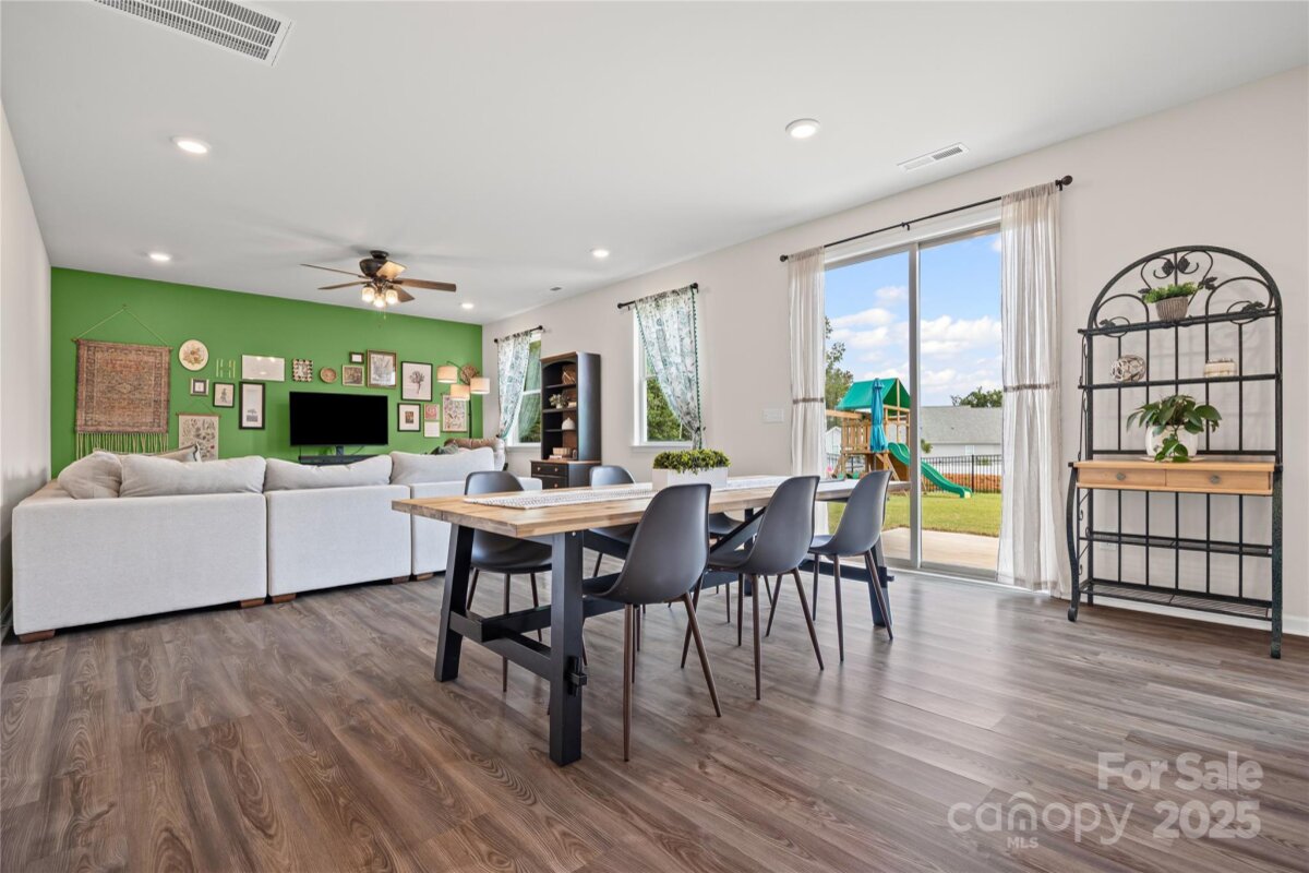 Welcome to this adorable and well-maintained home that combines cottage charm with modern convenience! This like-new home offers a bright and open floor plan, perfect for entertaining and everyday living. Step inside to find low-maintenance vinyl plank flooring throughout the main level, paired with fresh paint for a clean, updated feel. A custom barn door adds character to the dedicated office space—ideal for working from home. The spacious loft area upstairs provides flexible space for a playroom, media room, or additional lounge area. The heart of the home is the stylish kitchen, featuring white cabinetry, granite countertops, stainless steel appliances, and a large center island with seating—perfect for gatherings. The open-concept layout flows seamlessly into the dining area with easy access to the rear patio, and the spacious living room is filled with natural light, creating a warm and inviting space. Upstairs, you’ll find neutral carpet, a convenient laundry room, and three generously sized bedrooms, including a primary suite with a large walk-in closet and an en suite bath featuring a dual sink vanity, walk-in shower, and private water closet. Enjoy the outdoors in your fully fenced backyard with black aluminum fencing, ideal for pets, play, or relaxing weekends. A 2-car garage offers ample storage and convenience. This home is truly move-in ready and packed with charm—don't miss the opportunity to make it yours! Note: Playset and swing in backyard to convey. Home also has solar panels that will be paid off at closing.