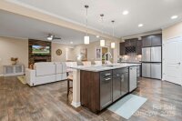 PRICE IMPROVEMENT - $750,000.00. The Dunwoody model - favorite of the Pinnacle collection. Upgraded Kitchen - Pull-outs shelves and self close doors on the cabinets, KitchenAid stainless steel appliances (refrigerator included), double ovens, gas cooktop w/stainless hood, quartz countertops, island w/pendant lights & seating (bar stools included), separate bar area w/beverage refrigerator. Adjoining Dining Area. Great Room features a gas, stone fireplace w/raised hearth. No carpet - easy care vinyl plank and tile throughout. Window treatments included. Dual primary suites, plus 2nd bedroom, plus office/flex spaces allow for a variety of room uses. Primary bedroom has walk-in custom closet. Laundry room includes washer/dryer, laundry sink, tons of cabinets, and a folding area. Screen porch (with retractable screen) and epoxy finished floor open to your private, fenced backyard. 2 car garage with additional golf cart garage and epoxy flooring complete the perfect home :). Don't miss this one.