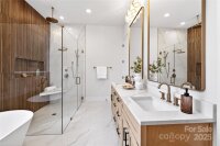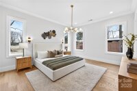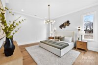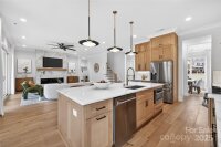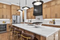 Check out this beautiful, New Custom Built Modern home- where timeless elegance meets modern comfort. Located in a very peaceful, quiet -NO HOA- subdivision. This partial-brick, 4-bedroom, 2.5-bathrooms, with bonus and loft, home exemplifies exceptional craftmanship and attention to detail. Inside, the open layout 10-foot ceiling creates a seamless flow throughout the living spaces with engineered hardwood flooring, highlighted by a stunning kitchen:36-inch gas range, cabinet wall panels to ceiling, under cabinet lighting, wine cooler, water pot filler, White Quartz countertops, self-closing cabinets and drawers, tile backsplash, Butler pantry with custom wood shelving and a high-end ZLINE appliances. A huge fireplace adds a touch of openness with a 10-foot ceiling with crown molding and 12-ft Double Sliding Door. The primary suite on main level, serves as a private retreat, featuring a luxurious ensuite bath, dual vanity with white quarts countertops, free-standing soaking bathtub, tile shower/flooring and large walk-in closet with custom wood shelves. Upstairs spacious bathroom has dual vanity with White Quartz countertops, tile shower and flooring. Spacious laundry room has tile flooring, sink and cabinets. Delta champagne bronze plumbing fixtures throughout the home. This beautiful home has Gas tankless Water heater, Gas fireplace, Gas Furnace and Gas range. Mud room/Drop zone with custom wood shelving located by garage. Spacious garage can easily fit two cars and has inside Storage room for additional storage. Enjoy a cup of coffee or have a family gathering on a big covered back porch. Extra long and wide driveway for additional parking. Perimeter soffit lightning brings touch of elegance. Conveniently located near schools, Sun Valley shopping centers, restaurants, theater and I-485. Come and see it. This home has it all!
