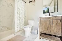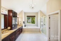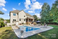 Located in the popular Weddington community of Bromley, you will find this stunning 5 bedroom, 5.5 bath Toll Brothers home situated on a 1+ acre lot with in-ground pool! Step inside from the rocking chair porch to find a two-story entry hall with dual curved staircase, formal dining room with dry bar and wine fridge, formal living room, spacious study, 2 story great room with stacked stone fireplace and double-story windows and a well-appointed kitchen featuring large center island with seating, gas cooktop, stainless appliances, farmhouse sink, custom cabinetry and walk-in pantry. A mudroom with a drop zone and conveniently located laundry completes the main level. Upstairs, you will find 4 generous-size secondary bedrooms, each with its own private bath and walk-in closet, and the primary suite featuring a tray ceiling, his and hers walk-in closets with custom shelving, a separate sitting room, and a luxury bath featuring a frameless shower door, separate soaking tub, updated tile and extensive cabinetry. Enjoy the outdoors from the covered rear deck with fireplace that overlooks the private, wooded back yard, in-ground heated pool, firepit area and FULL OUTDOOR BATH WITH SHOWER! Additional features include wide plank engineered wood floors throughout home including all main living areas and bedrooms, updated designer lighting, a spacious 3 -car side load garage with cabinetry for storage and full irrigation. Recent owner updates include AC (upstairs), Kitchen Aid dishwasher, and built-in Kitchen Aid double microwave oven with convection/air fry feature.