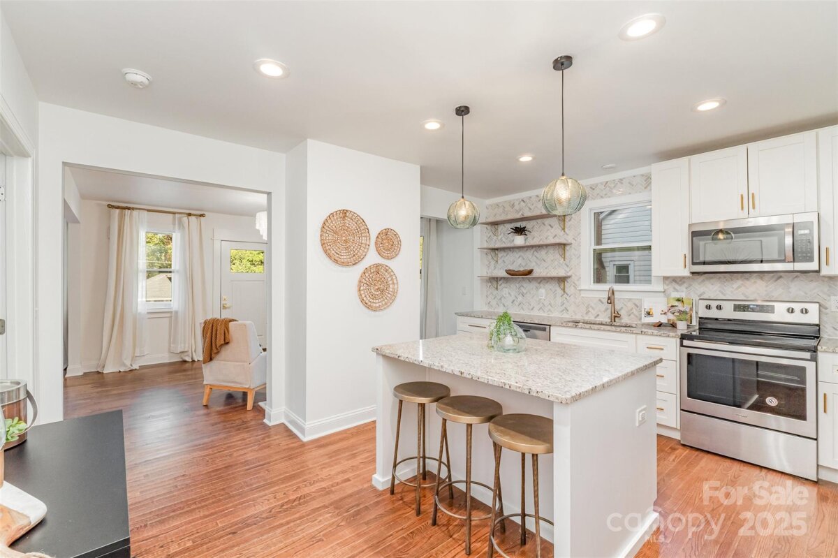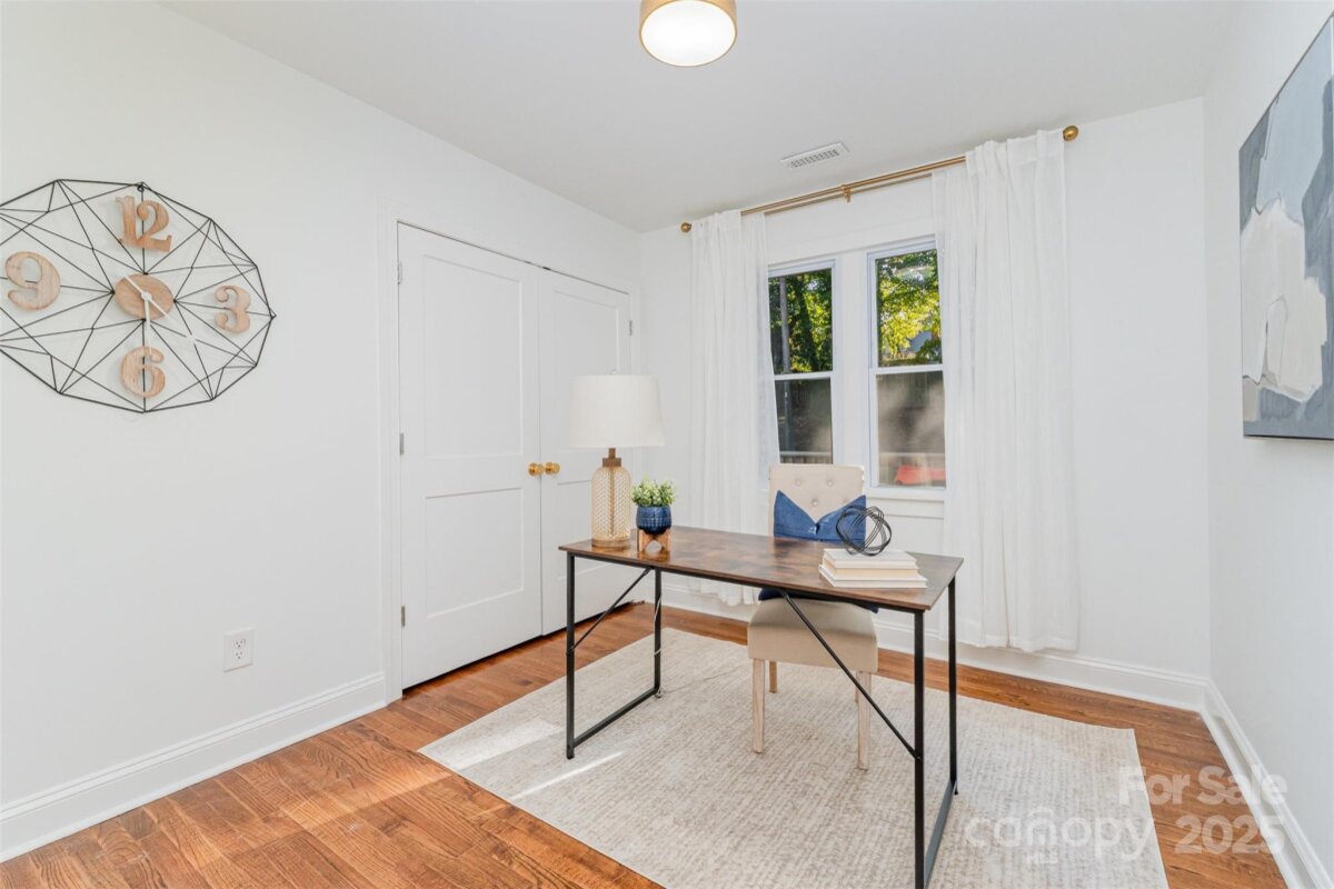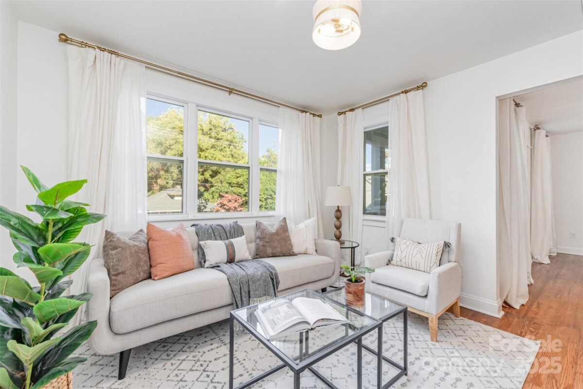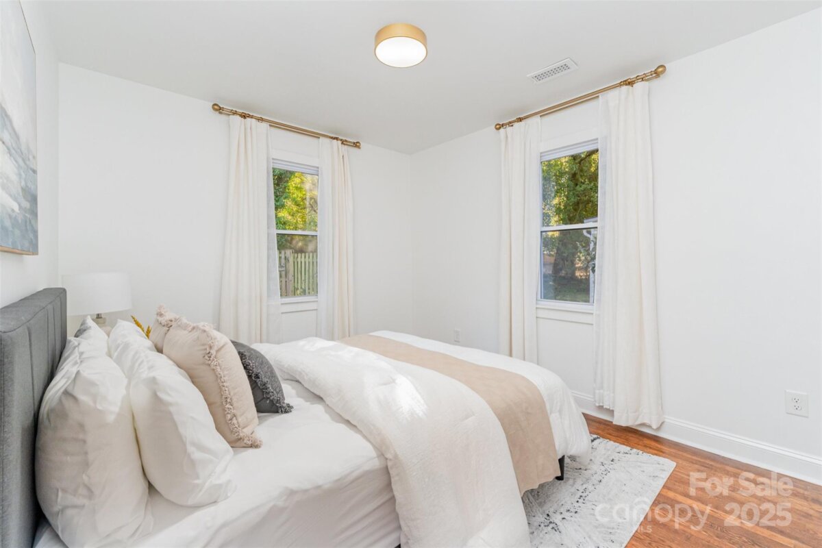 The turnkey home represents history and charm as well as convenience. Located in an up and coming area less than 10 minutes to Uptown you can easily enjoy all the things that Charlotte has to offer. At 1225 sq ft, this home is larger than most of its 1940’s counterparts. The interior of this home is simply swoonworthy. A gorgeous chandelier greets you upon entry along with hardwoods, updated kitchen and bath. The entire interior has just been painted pure white. Easily WFH in the bedroom that can serve as your private office and look out over your deck and privacy fenced large back yard, complete with lighting and firepit. Brand new roof, HVAC 2021, new sod in front, side & back. New gold hardware on the cabinets & drawers & doors, new light fixtures throughout…this house is dreamy inside. Come see for yourself! Extensive list of updates available upon request. NO HOA Professional Photos and measurements will be made available Oct 18th. Open for showings Oct 18th.