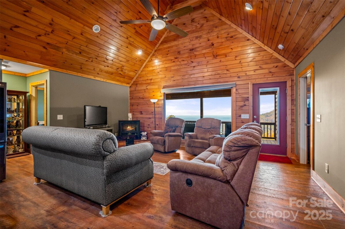 Sunset Views, Modern Comforts - Log-sided, fully insulated 3BR/2BA cabin with flex space on 16+ acres featuring big, long-range mountain views. Open great room with cathedral tongue-and-groove ceiling, propane Buck stove, and wall of windows overlooking the view. Custom kitchen offers quartz counters, 5-ft island, Knock-Knock Refrigerator, Blanco sink, and soft-close cabinetry. Split floor plan with spacious master suite, walk-in closet, and spa-style bath with marble counters and Kohler shower. Laundry with LG washer/dryer adjacent to master. Full unfinished, walk-out basement, framed and plumbed, plus oversized garage. Back up generator, 500 gal water storage, owned 300 gal propane tank, and concrete RV pad with 30-amp hookup. Enjoy wildlife, privacy, and panoramic views in this quiet mountain community. Conveniently located between Charlotte and Asheville, this property affords easy access to I40, I85 and I26 which is perfect for travelers, and especially nice for RV owners. Located in rural Rutherford County in Logans Store Community this house seems far from everything but is really only 20 miles to Walmart!
