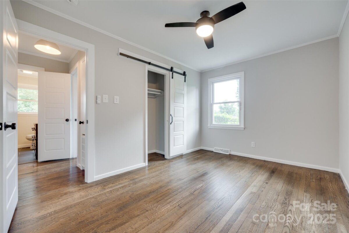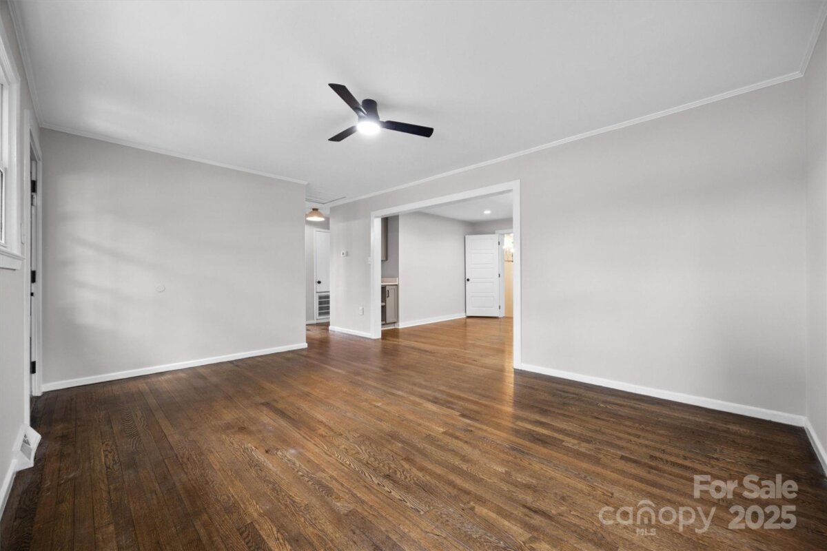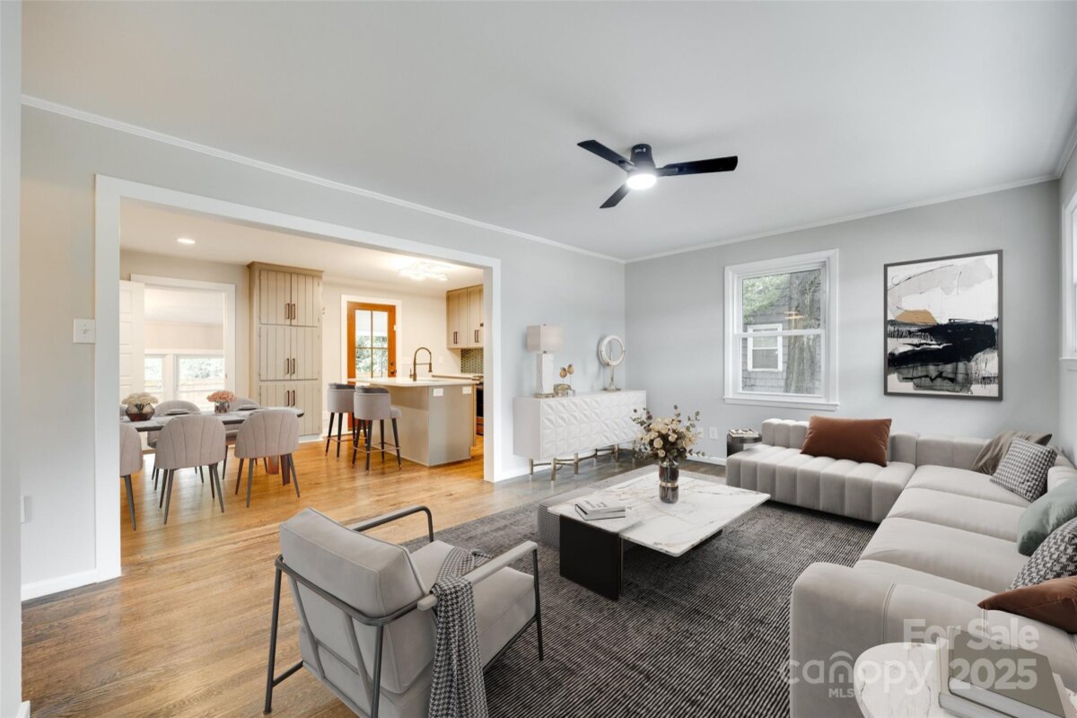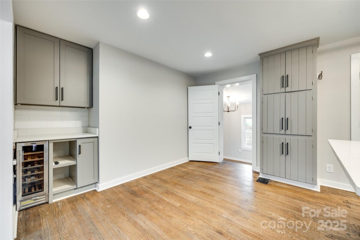 NO HOA in Enderly Park neighborhood, just a few minutes from Uptown Charlotte. Step into this cozy white painted brick ranch-style home with the charm of a cottage. This 2 bedroom, 2 bath and bonus room/bedroom residence features beautiful details throughout in this open floor plan. Enjoy hardwood floors throughout the living area, modern kitchen with sleek stainless steel appliances, center island and gorgeous modern tiled backsplash. Additional features includes a wet bar (complete with wind fridge), a beautiful solid-wood entry door and tastefully modern finishes in the bathrooms. Flex/bonus room off the kitchen can be used as a 3rd bedroom. A lot of natural light floods the spacious living areas, enhancing the home's warm, inviting atmosphere. This move-in-ready home offers the perfect blend of modern and comfort in such a charming setting. Privacy fenced in back yard. Don't miss the chance to make this yours.