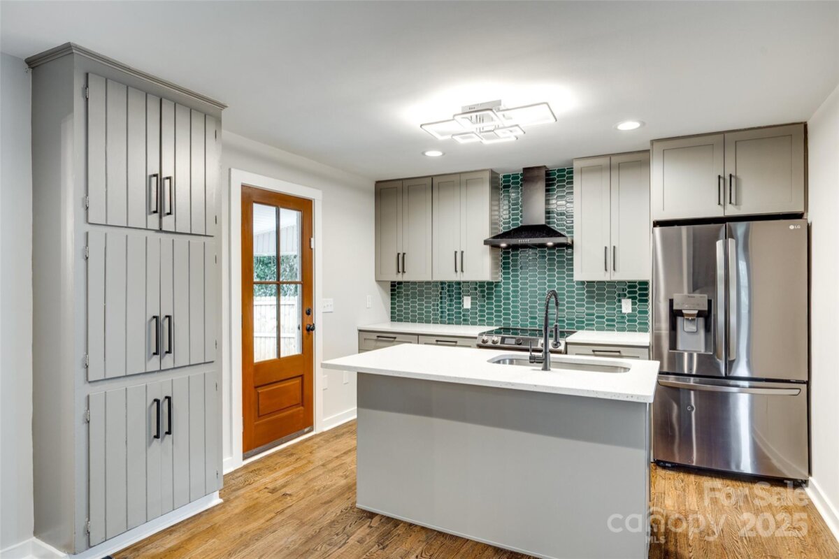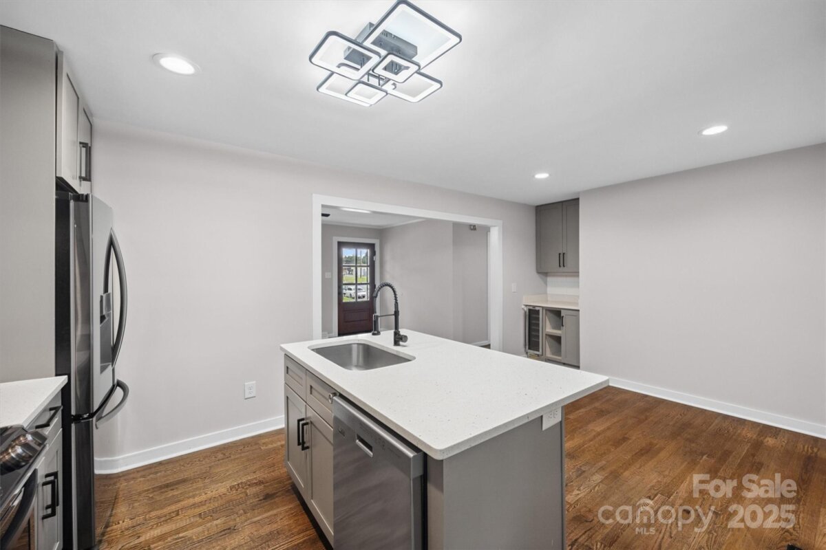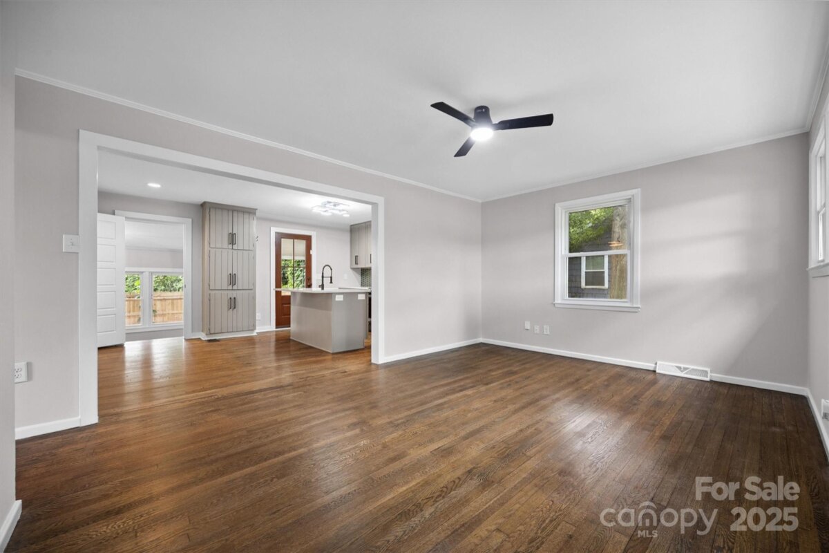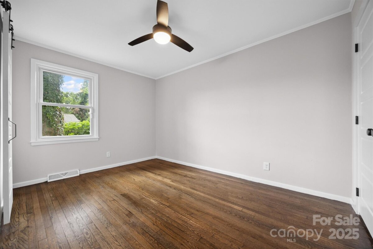 NO HOA in Enderly Park neighborhood, just a few minutes from Uptown Charlotte. Step into this cozy white painted brick ranch-style home with the charm of a cottage. This 2 bedroom, 2 bath and bonus room/bedroom residence features beautiful details throughout in this open floor plan. Enjoy hardwood floors throughout the living area, modern kitchen with sleek stainless steel appliances, center island and gorgeous modern tiled backsplash. Additional features includes a wet bar (complete with wind fridge), a beautiful solid-wood entry door and tastefully modern finishes in the bathrooms. Flex/bonus room off the kitchen can be used as a 3rd bedroom. A lot of natural light floods the spacious living areas, enhancing the home's warm, inviting atmosphere. This move-in-ready home offers the perfect blend of modern and comfort in such a charming setting. Privacy fenced in back yard. Don't miss the chance to make this yours.