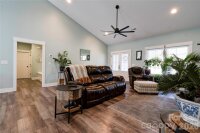 Welcome to this 3-bedroom, 2-bath home situated on a 1 acre fenced lot built in 2022. Plenty of parking with a large driveway and a 2-car garage. Split bedroom floor plan with open vaulted ceiling den and dining areas. Kitchen features granite counters and center island, breakfast bar and all appliances, washer and dryer remain. Enjoy relaxing mornings on the covered front porch or rear covered deck, ideal for gatherings or quiet evenings overlooking the fenced yard. The primary bedroom includes a private en-suite bath with granite countertops and a walk in shower. LVP flooring throughout the home. This almost new home offers comfort, convenience, and a generous sized, level lot to enjoy. Schedule your showing today!