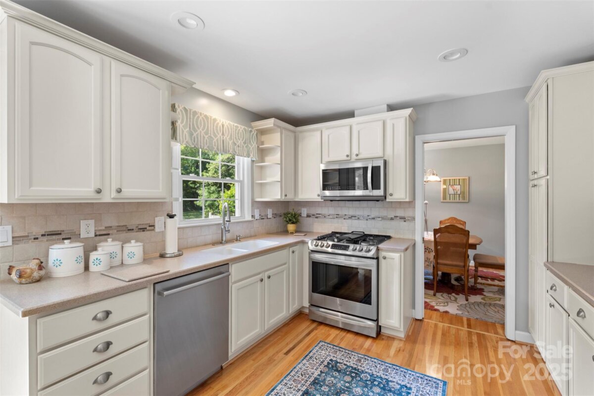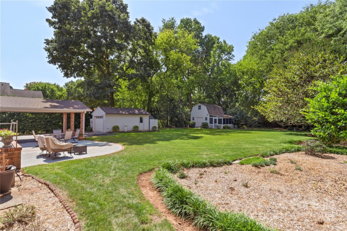 Welcome Home! Discover a charming, meticulously maintained home in one of Charlotte’s most sought-after neighborhoods. This spacious residence boasts a versatile floor plan with ample living space. Enjoy two living rooms, a laundry room, detached garage, carport, and a backyard workshop with an attached covered porch. With an additional 220 sq. ft. of heated living space that can be used as an office, bonus room or a 5th bedroom. Recent upgrades include a new water heater, roof (2023), newer furnace & hvac (2015) and renovated bathrooms. The lush, flat green yard is ideal for entertaining friends and family. Steps away from the swim club, greenway, tennis courts, and walking distance to the elementary school, this home has it all—move in and make it yours!