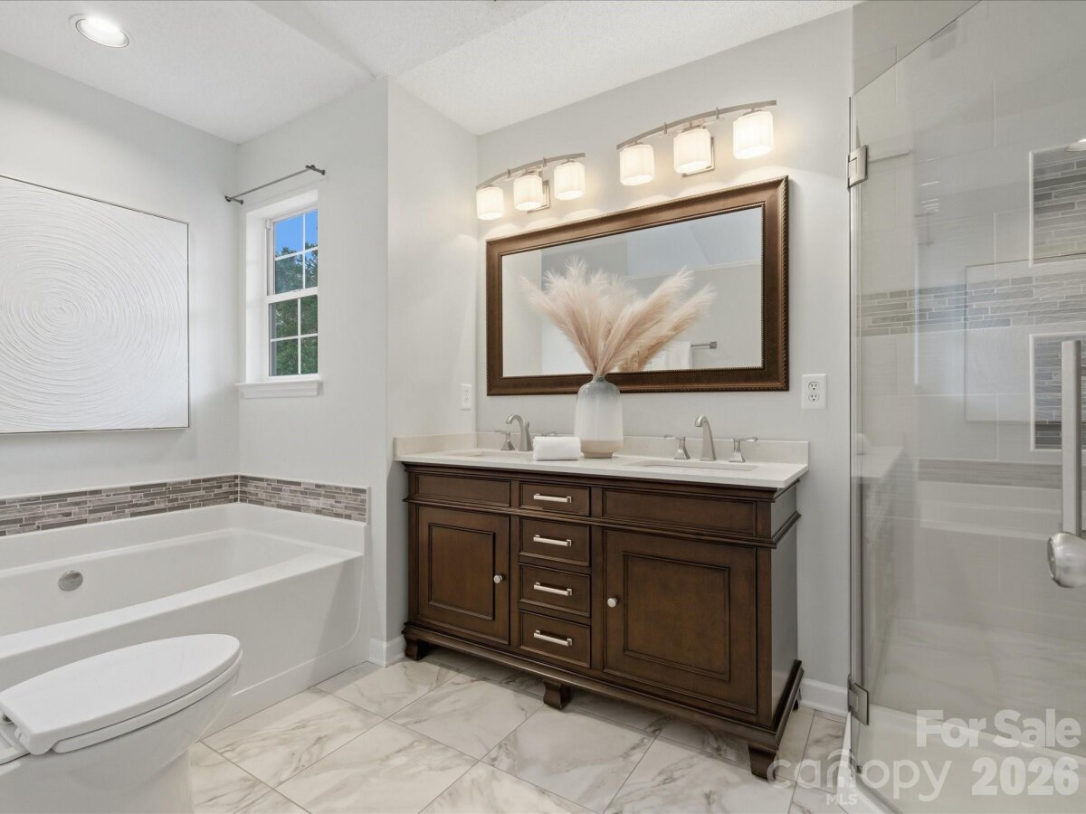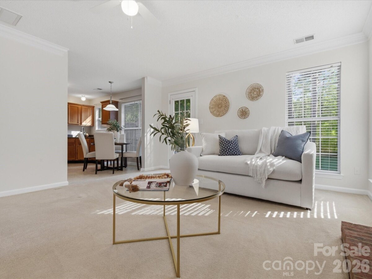 Welcome to this beautifully maintained 4-bedroom, 2.5-bath home in the highly desirable Brightmoor community, just minutes from charming downtown Matthews, the new I-485 interchange, and nearby parks. This inviting home exudes warmth and character, featuring a cozy wood-burning fireplace and a retractable awning that overlooks a flat, lush backyard—perfect for relaxing or entertaining. The kitchen is well-appointed with granite countertops and stainless steel appliances, offering both style and functionality. Both full bathrooms have been thoughtfully updated with new flooring, modern vanities, and upgraded lighting. Neutral paint throughout provides a fresh, move-in-ready canvas for your personal touch. Brightmoor offers exceptional community amenities including sidewalks, pickleball and tennis courts, a playground, and a pool—ideal for an active lifestyle. All appliances convey, making this home truly turnkey and ready for its next owners. NEW HVAC in 2023, new 5x4 gutters in 2025. Don’t miss this opportunity to own a wonderful home in one of Matthews’ most sought-after neighborhoods!