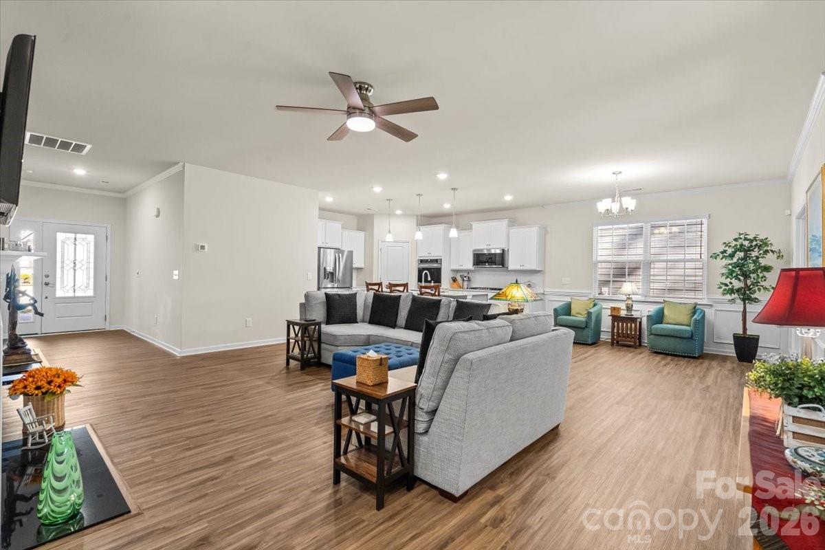 Experience refined living in this exceptional 3-bedroom, 3-bath luxury home located within a sought-after community in the rapidly growing area of Tega Cay. Designed for both elegance and ease, this home offers a thoughtfully crafted open floor plan ideal for entertaining and everyday comfort. Enjoy the spacious loft for entertain or relaxing. Crafted with automatic shades controlled with just a push of a button. The expansive gourmet kitchen serves as the centerpiece of the home, showcasing sleek, upscale finishes, abundant cabinetry, a large Island, and a double oven—perfect for hosting gatherings or preparing meals with ease. Adjacent to the kitchen, a private dining room provides an inviting setting for formal dinners and special occasions. Unwind in the spacious living area, enhanced with built-ins and a cozy fireplace. The home extends seamlessly into a screened-in sunroom, creating a tranquil space to enjoy morning coffee, evening relaxation, or year-round indoor-outdoor living. The luxurious primary suite is a true retreat, featuring a beautiful en-suite bathroom with a large walk-in shower, premium finishes, and a generous walk-in closet designed for both style and function. Additional bedrooms and bathrooms provide flexibility for guests, hobbies, or a home office. Enjoy luxury living all while being conveniently located near shopping, dining, recreation, and the continued growth and energy of Tega Cay. Low-maintenance, upscale design, and an exceptional location is what makes this home a standout opportunity.