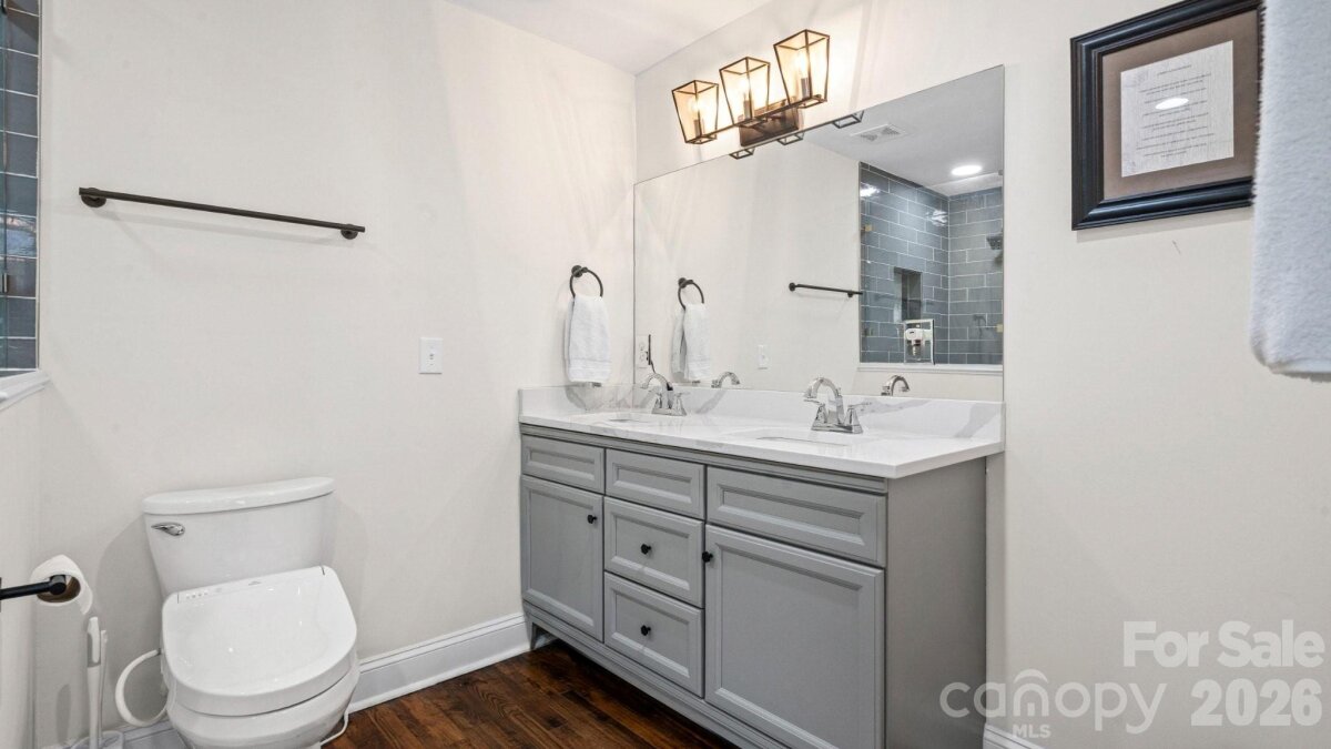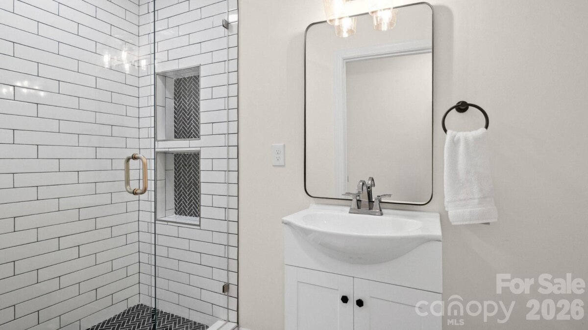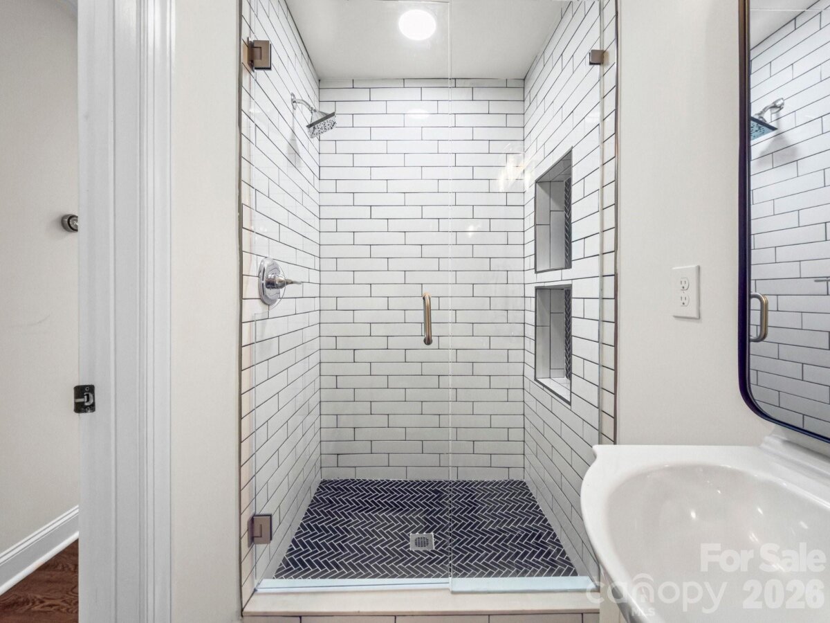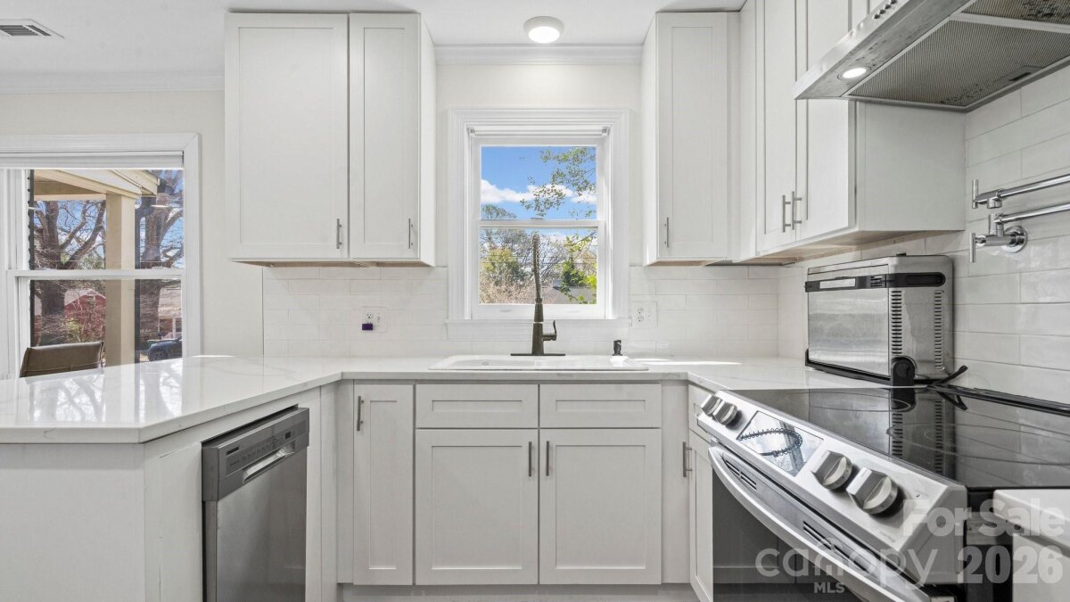 Welcome to Enderly Park, one of Charlotte's most vibrant and fastest-growing neighborhoods! This stunning, fully renovated 3-bedroom, 2-bathroom one-story brick ranch offers the peace of mind of a "like-new" home with the timeless charm of a classic ranch. Major systems—including electrical, HVAC, plumbing, and windows—were recently replaced, making this home truly turn-key. The bright, open floor plan is anchored by solid hardwoods, crown molding, and recessed lighting. Gourmet kitchen features quartz countertops with gray veining, soft-close cabinetry, a large island, pot filler, and a sleek vent hood. Both bathrooms are outfitted with modern walk-in showers and seamless glass, while the primary suite includes dual sinks and a walk-in closet. Fenced backyard is an entertainer’s paradise, featuring a spacious updated patio that's perfect for entertaining. Location x3!!! Just minutes away from popular local spots like Lucky Dog Bark & Brew, and State of Confusion. Steps from the Stewart Creek Greenway, offering easy access to walking and biking trails. With new construction nearby reaching $1M, this is a rare opportunity to own a designer-renovated home in a rapidly appreciating area. Welcome HOME!