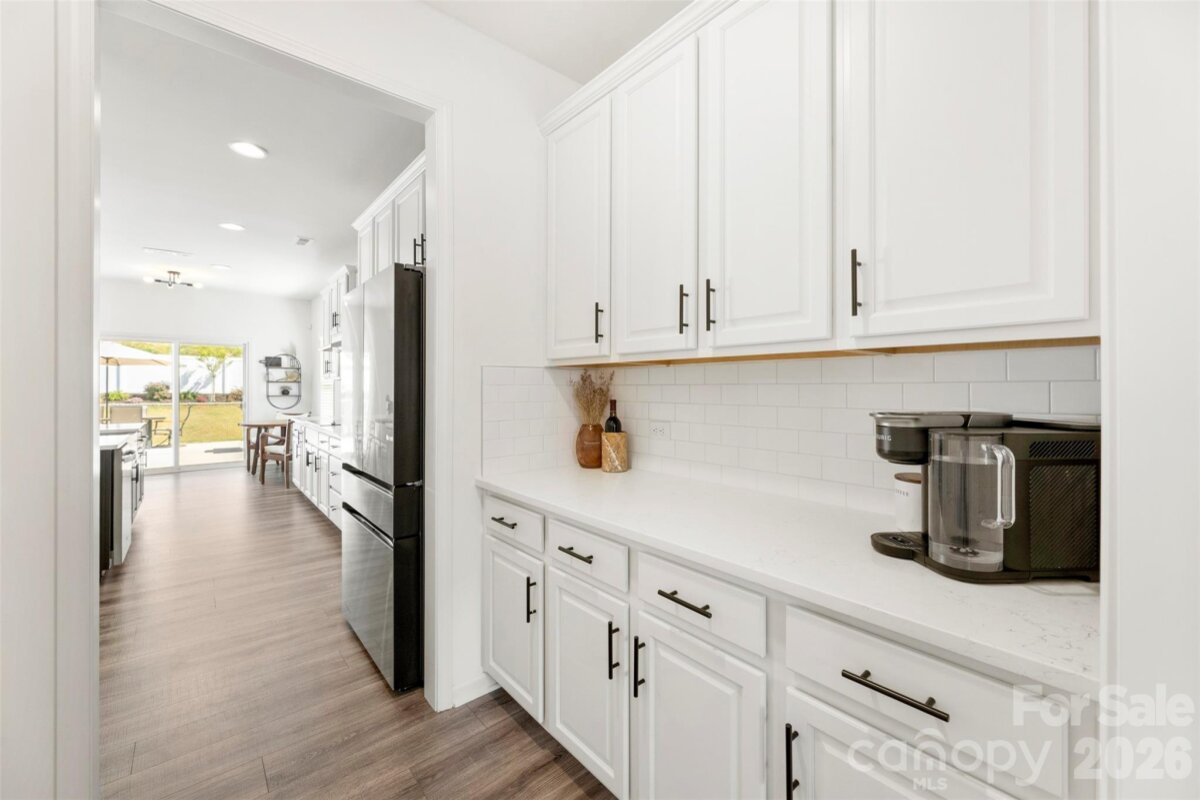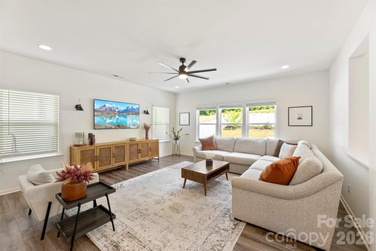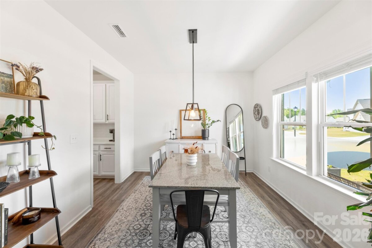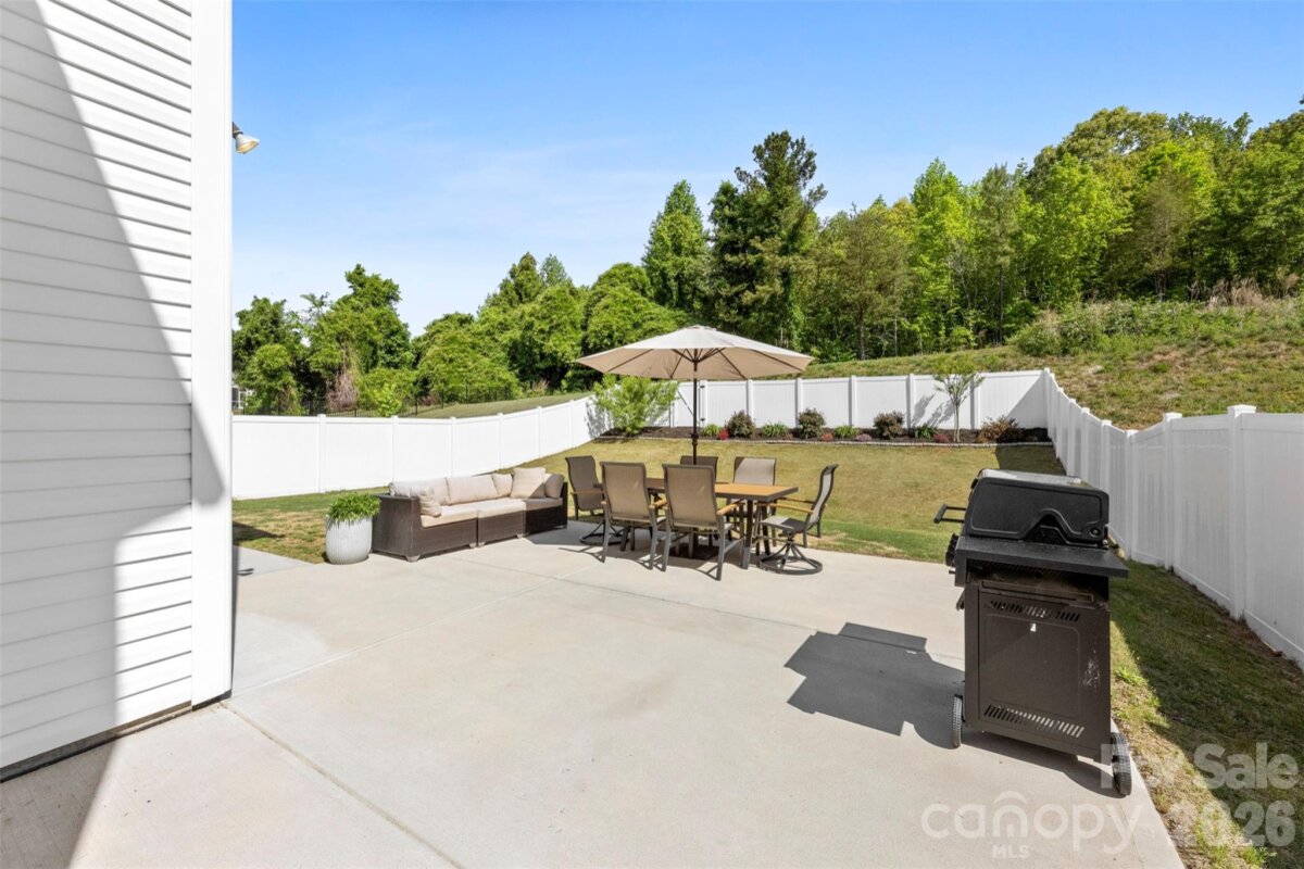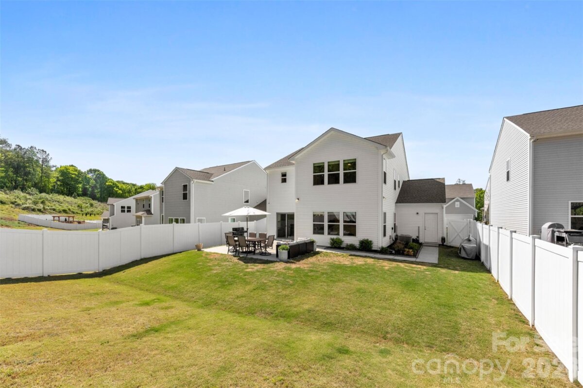 Welcome to this beautifully maintained, move-in ready 2022-built home offering 2,484 square feet of thoughtfully designed living space in a highly desirable setting. The heart of the home is the gourmet kitchen, featuring quartz countertops, abundant cabinetry, and a large island that opens seamlessly to the expansive family room, creating an ideal layout for both everyday living and entertaining. Upstairs, you’ll find generously sized bedrooms along with a spacious loft that can serve as a second living area, home office, or playroom. The oversized primary suite includes a tray ceiling, private bath featuring frameless glass shower, and a large walk-in closet. Outdoor living is a standout with a fully fenced backyard featuring a 6-foot privacy fence, mature landscaping, peaceful views of the nature conservation area behind the home, and an expansive patio that comfortably accommodates plenty of seating for gatherings and relaxation. The extended garage provides additional space for storage, hobbies, or larger vehicles, and includes a convenient exterior access door. Move-in ready and commuter friendly to Charlotte, this home offers modern living, functional space, and a peaceful natural backdrop.