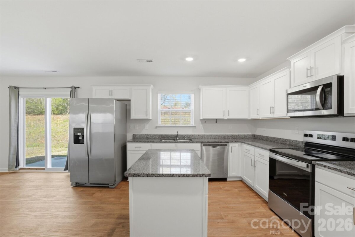 Welcome HOME! You'll enjoy the popular open floor plan with beautiful vinyl floors in the living areas, and plush carpets in the bedrooms. The spacious kitchen is equipped a large island, beautiful granite countertops, soft close cabinets, and stainless steel appliances. You'll love the private primary bedroom with an oversized walk-in closet, dual vanity, and vaulted ceiling. Each bedroom upstairs features huge walk-in closets. Other features include recessed lights, gas fireplace, and garage for all of your storage needs. Summer is on the way, so cool off in the neighborhood pool!