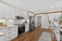 Lovely renovated farm house with primary on main situated on a gorgeous perfectly level 2.35 acre lot in picturesque Wesley Chapel and zoned for Weddington Schools. This beautiful home was upgraded from top to bottom in 2022! Gorgeous kitchen features an oversized extended island with quartz tops, ceiling height cabinetry, and stainless steel appliances. Kitchen overlooks both a beautiful breakfast area featuring a radius glass wall as well as a stunning Great Room with vaulted ceiling and fireplace. Gorgeous primary suite, conveniently located on the main floor, includes a large walk in closet plus stunning primary bath with vessel tub and oversized designer tile shower with dual rain head shower heads and sprayers. Main floor also features a private office with french doors. The second level includes three additional bedrooms, one with an en suite bathroom and double sink vanity with large walk in closet. The other two are accompanied by a jack and jill bathroom, and each room equipped with individual closets with custom built ins. Also on the second level is a 300 square foot bonus room accessible via a secondary staircase. The real gem of this property is the expansive yard. This lovely home features over 2 acres of privacy with both mature trees and lots of green space. Perfect space to take in the wonderful North Carolina weather! MOVE IN READY!