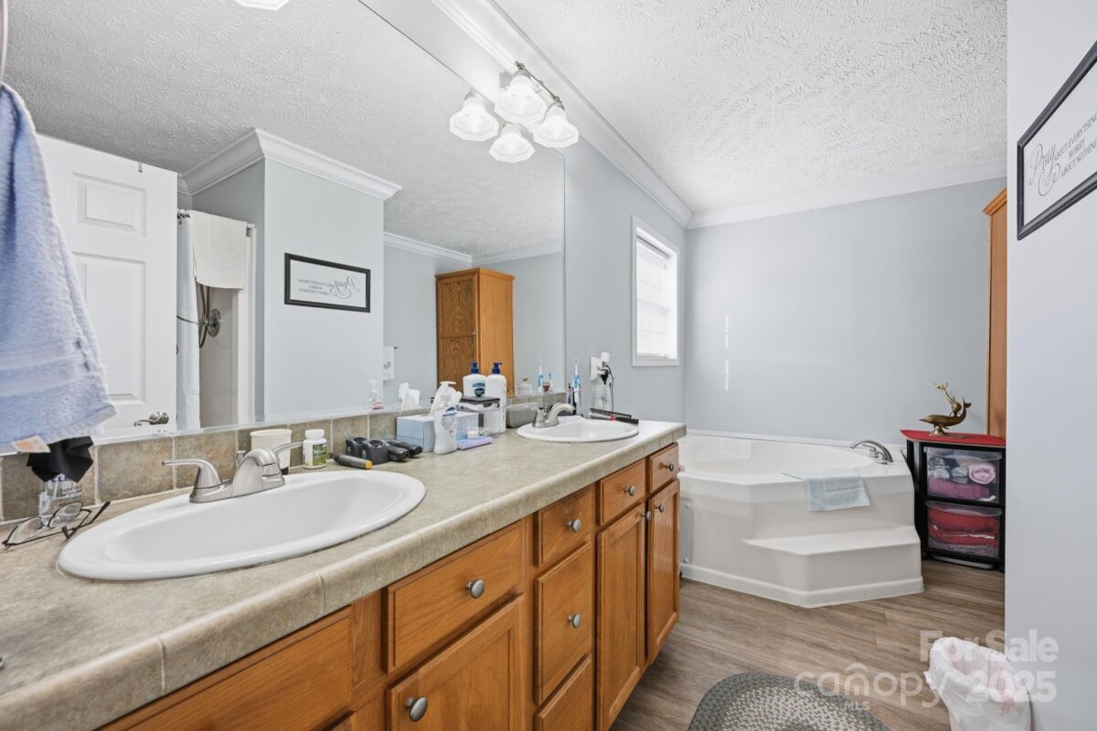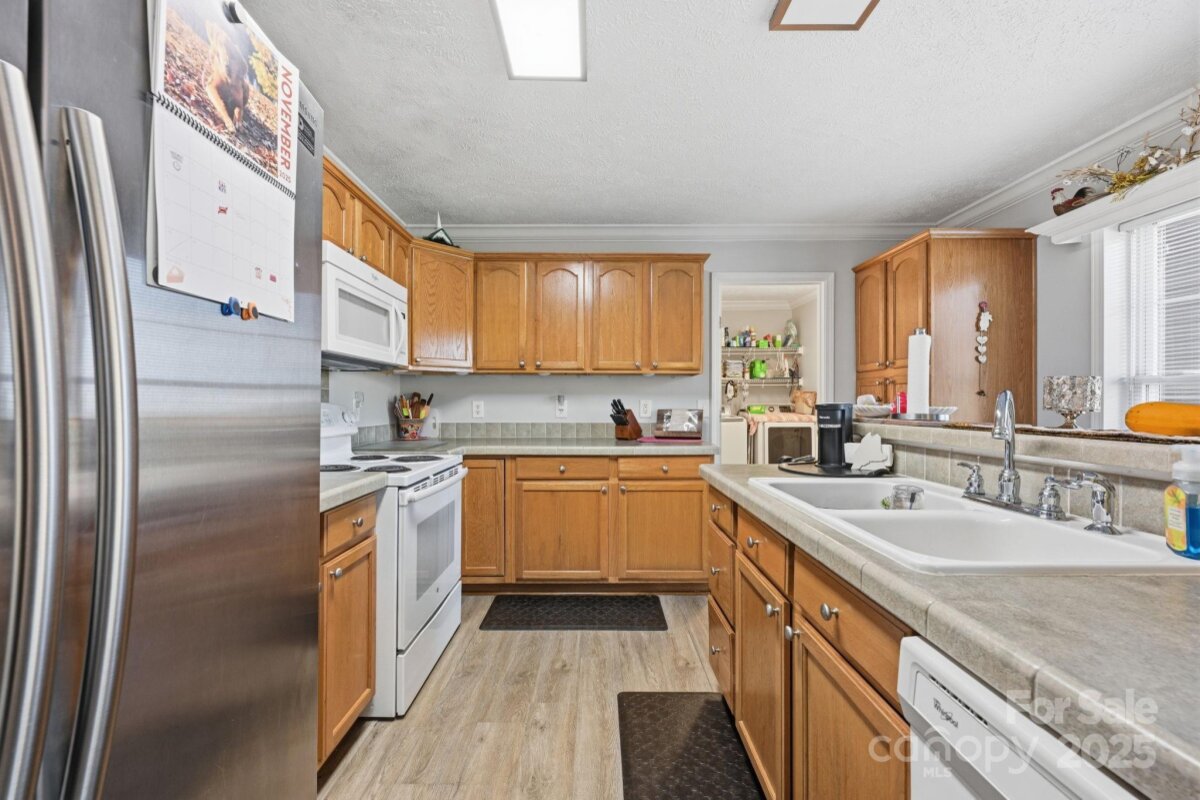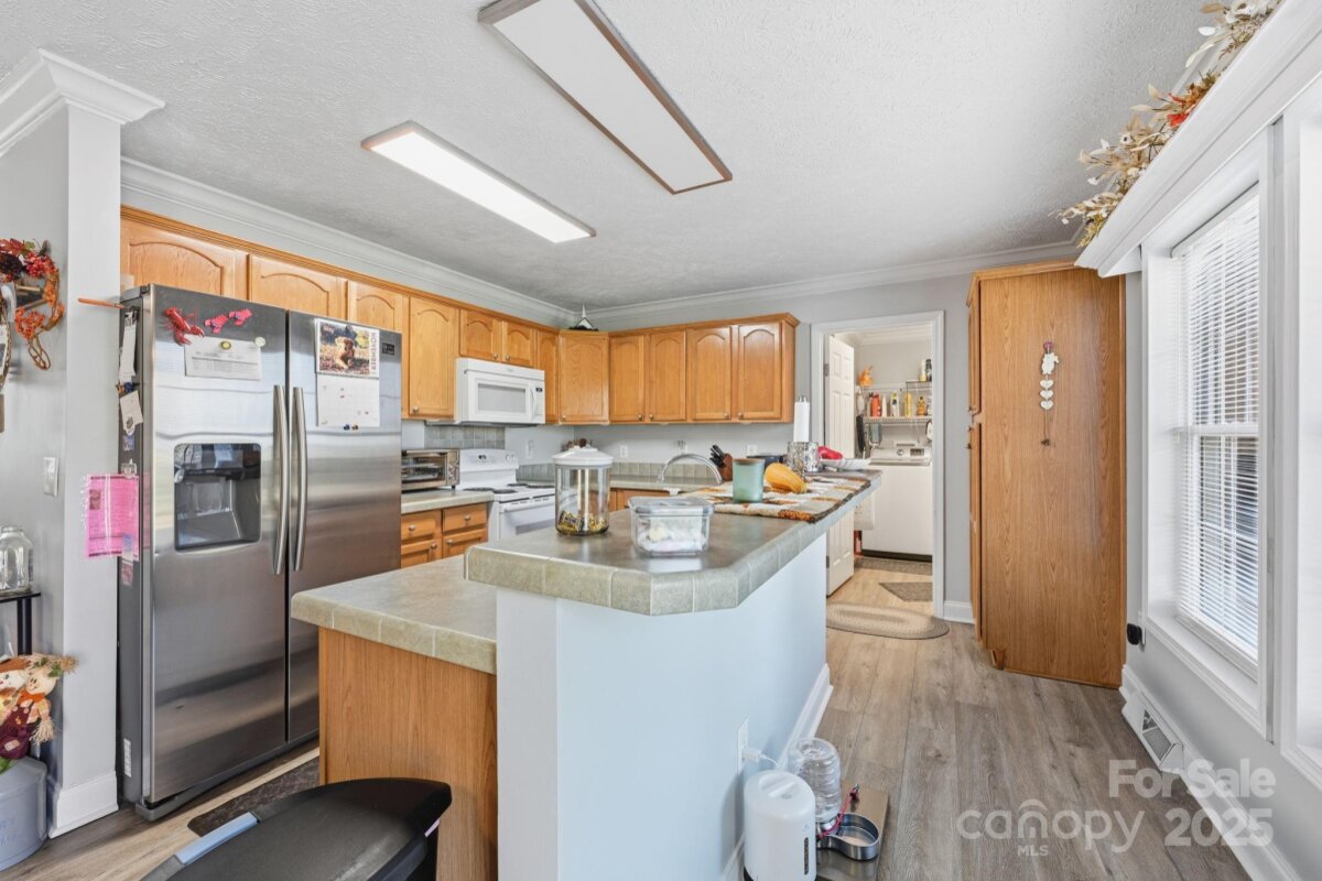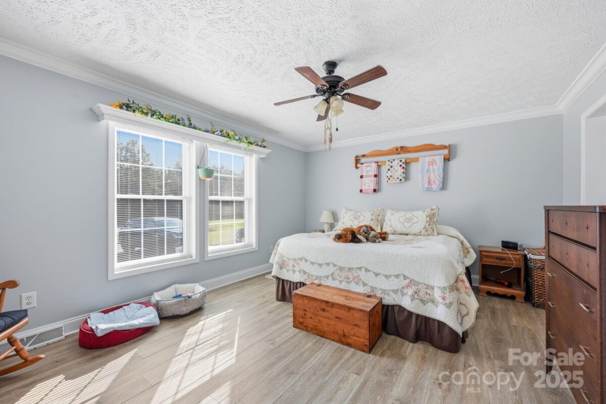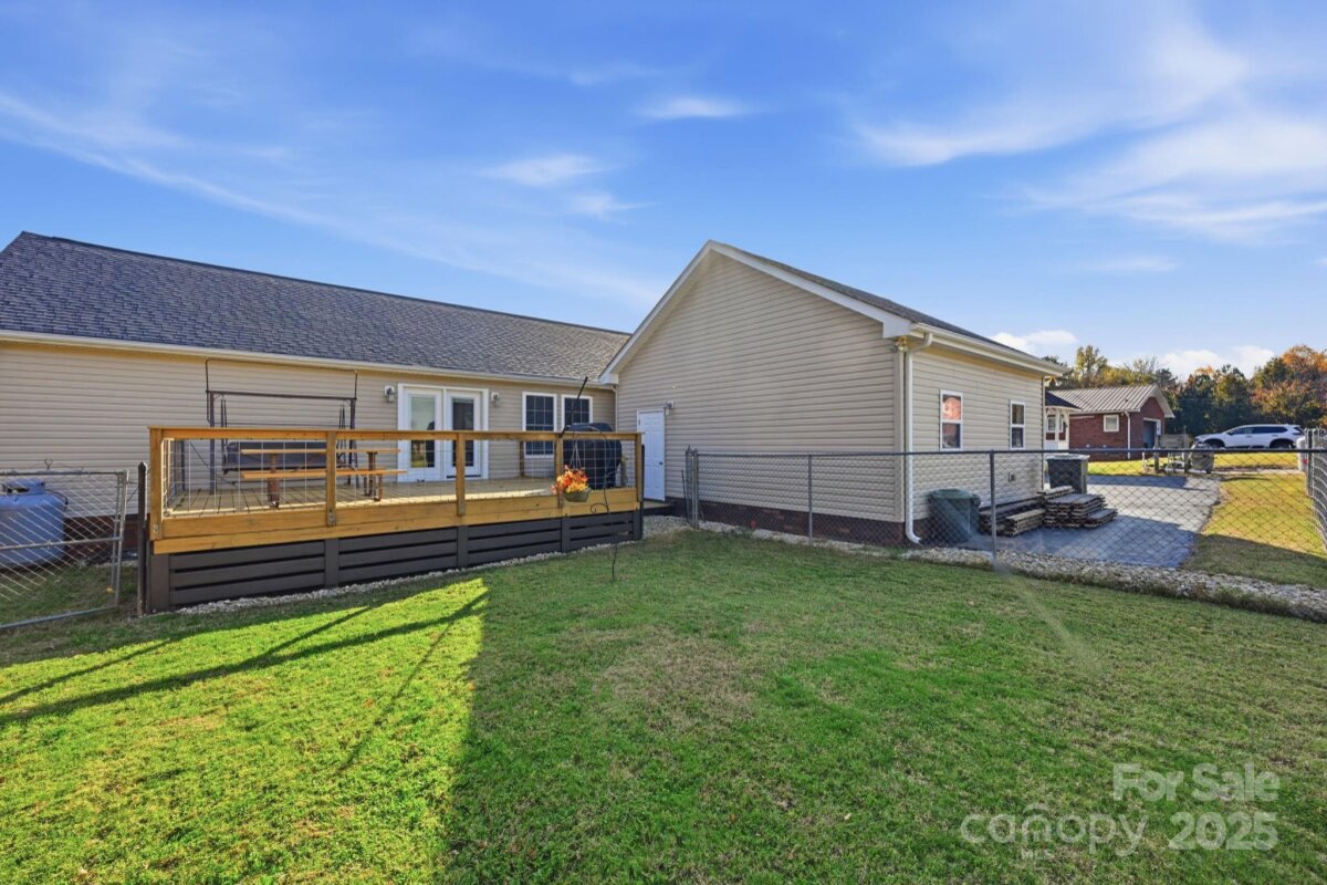 Immaculately maintained 3-bedroom, 2 bath, 1,533 SQ' of HLA home situated on a flat 0.58-acre lot. Located minutes from downtown Cleveland and just 20 minutes to historic downtown Statesville or downtown Salisbury. Originally built in 2006, this house has been meticulously cared for and boasts new LVP flooring throughout the majority of the main level. The roof was replaced in 2020, an upgraded heat pump was installed in 2018 and the crawlspace has been lined w/ 14 mil white liner w/ taped seams to seal off ground moisture and added extra lighting. A new water well was drilled in 2023. This home’s plentiful windows bathe the open interior with natural light. The owner's retreat, located directly off the living room, is quite spacious with a lovely bath that has a double vanity, large soaking tub and separate shower. Two other spacious bedrooms share a full bath with a tub / shower combo. The kitchen is a cooks dream w/ ample cabinetry, laminate countertops that have tile edging, plus a large island where the sink is located. The fenced-in backyard is especially tranquil with its recently refinished oversized custom deck. The two car sideload garage has built in cabinetry and a workbench along one wall and two large storage sheds in the backyard allow you to keep everything in order. Don't miss this one. You will not be disappointed. Welcome home!