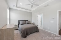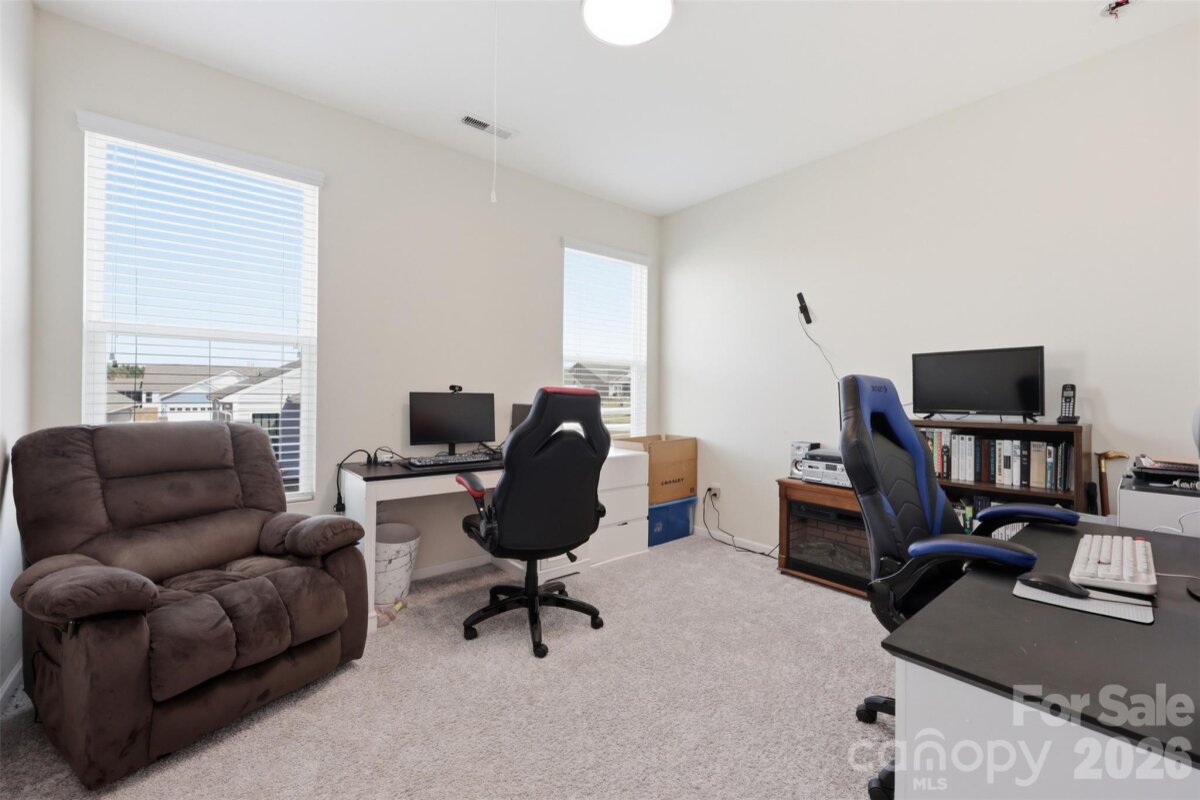 Welcome to 3176 Bridgewater St. in the garden section of the highly sort after Walnut Creek community on the Lancaster/Indian land border as you come through the front door of this eight years young home you will find two bedrooms on the left with a full bathroom in between them Continuing down the LVP plank hallway is your dedicated laundry room on the right with recently installed cabinetry and a granite top desk, utility area the door from the house to the spacious two car garage is accessed through the laundry room continuing on with on the left. There is a modern kitchen with gray cabinetry granite countertops, tile, backsplash, and newer appliances as well as a gas range Meals can be eaten at the granite breakfast nook with high stools, or to the right of the kitchen as a dining room with space for a large table buffet or China cabinet directly off the dining room is the full-size flex room large enough to serve as a true fourth bedroom or whatever you you desire The other bedroom off the dining room is the primary bedroom with spacious walk-in closet and the primary bathroom with a granite top dual sink vanity and walk-in shower overlooking it all inside this 1700 square-foot plus home is the carpeted family room featuring a large gas fireplace. Enter the backyard through the French style doorway with recently installed vertical blinds the backyard area of the home features a covered patio with a screened in porch the fully fenced backyard with two entry gates as dog friendly and private, and the HOA for the garden section includes weekly landscaping services in season even inside the fenced in area other amenities within this community include walking trails and event clubhouse with exercise room, two resort style pools, tennis courts, bocce courts, playgrounds, and soccer fields borders Waxhaw, North Carolina and Indian land South Carolina with access to great shopping and healthcare